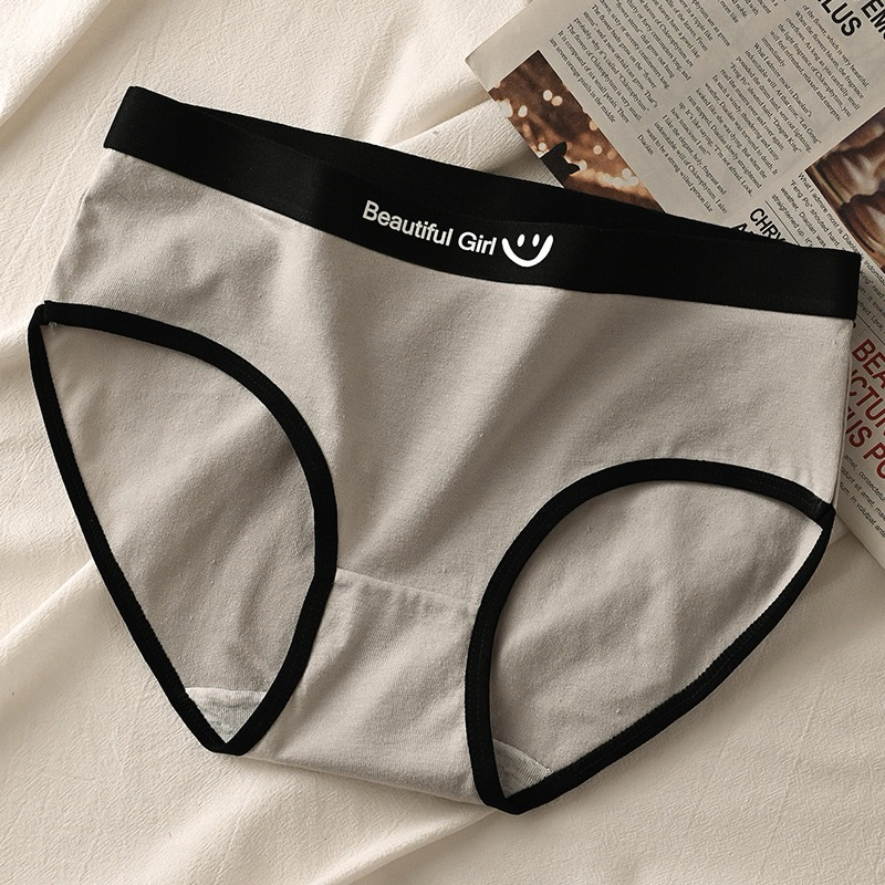 kingshopping(XWN087)(ร้านไทย) กางเกงในผู้หญิง(ลายหน้ายิ้ม) เอวกลาง ใส่สบายผ้านุ่ม ระบายอากาศได้ดี