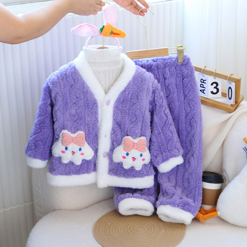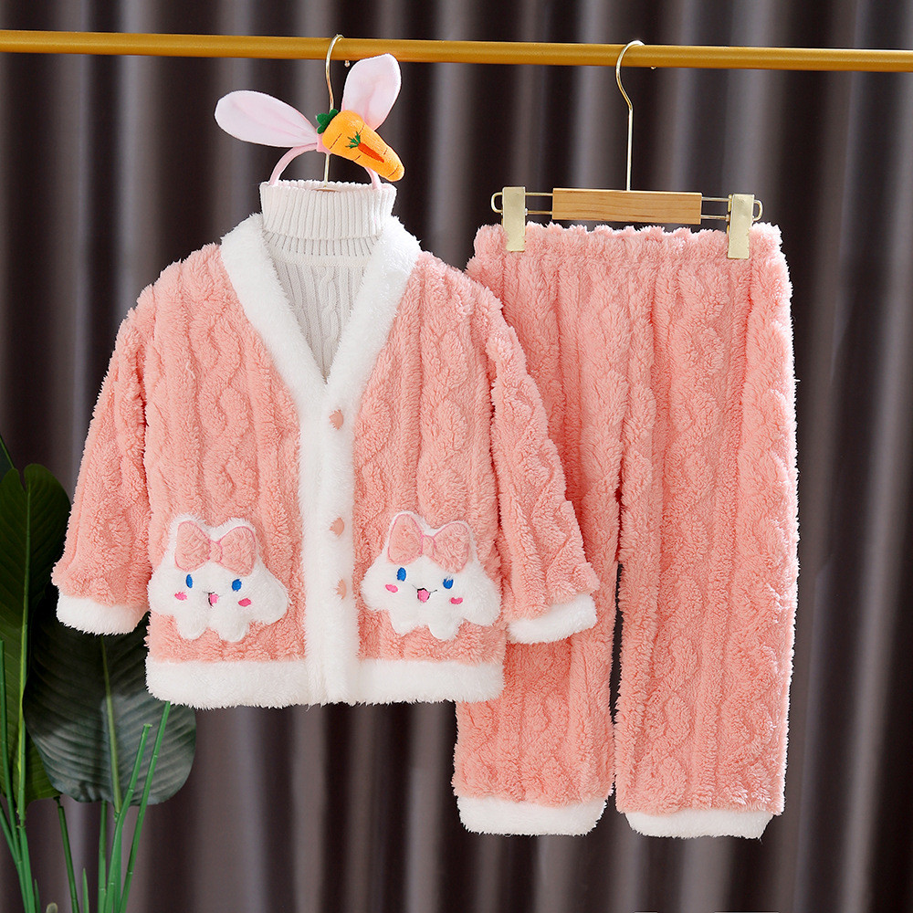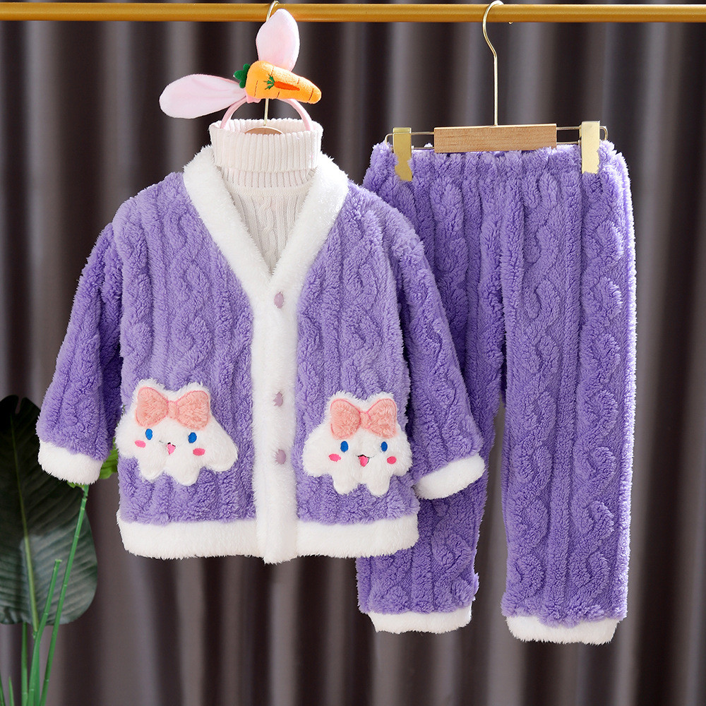 Cinnamoroll & Kuromi Girls Coral ขนแกะชุดนอนชุด 4-8 ปีฤดูหนาว Flannel Loungewear เด็ก