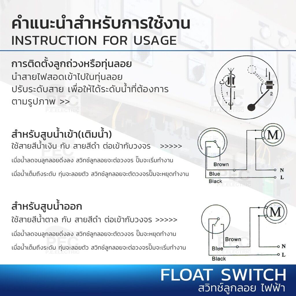 ลูกลอย ไฟฟ้า Float switch สวิตซ์ ลูกลอยไฟฟ้าใช้ได้ทั้ง 12V 24V 220v 380V สายยาว 1m,2m,3m,5m,6m,8m,10m,15m POWERTECH