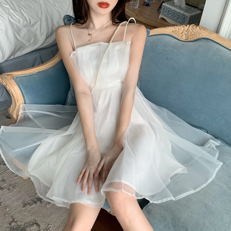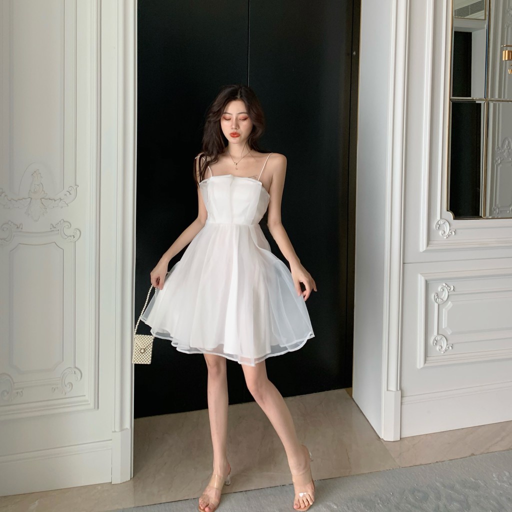 🌈พร้อมส่ง👗เดรสออกงาน สายเดี่ยว (สีขาว/สีชมพู) ตัวนอกเป็าผ้าแก้วเงาๆ ข้างในเป็นผ้าลื่นๆ น่ารักมาก เหมือนเจ้าหญิง👑