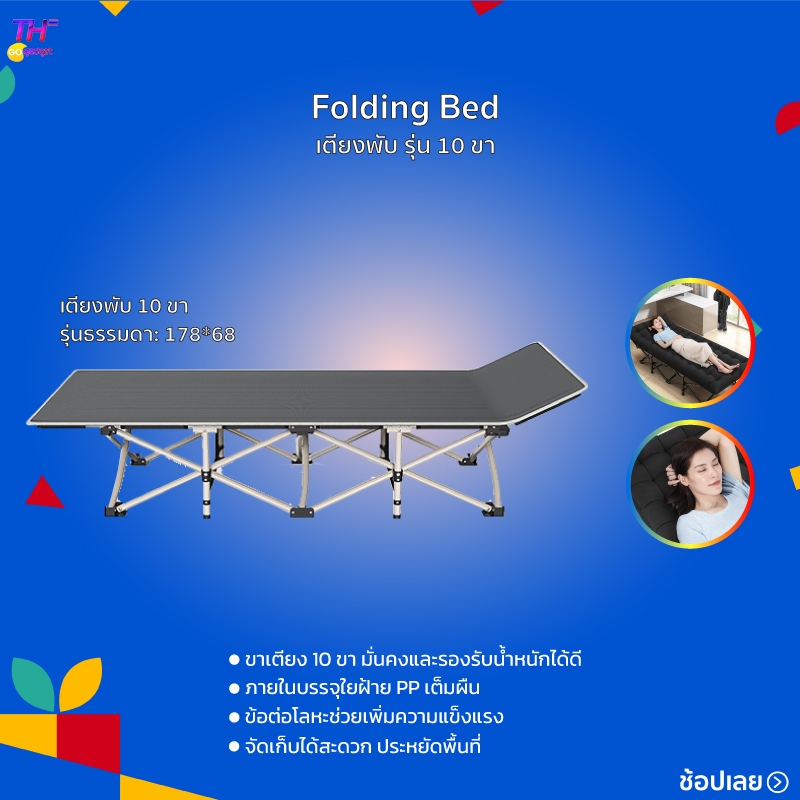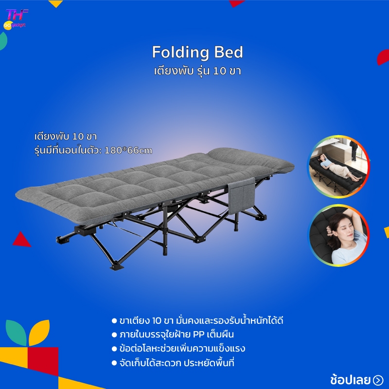 Folding Bed เตียงพับ รุ่น 10 ขา เตียงนอนพับได้ เก้าอี้นอนปรับระดับได้ พักกลางวัน เตียงเดี่ยว เตียงอเนกประสงค์นั่งเอนกาย