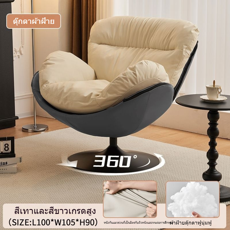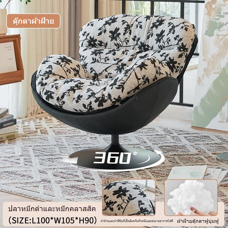 โมเดิร์นมินิมอล เก้าอี้เปลือกไข่เดี่ยว โซฟาห้องนั่งเล่น เก้าอี้ปรับเอน วินเทจ ลำลอง หมุนได้ แขนเก้าอี้ 9FSM