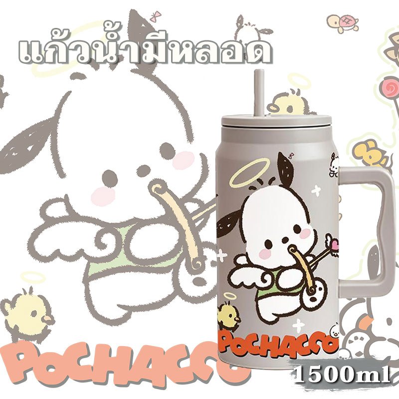 ชินจัง ShinChan แก้วเก็บอุณหภูมิ 1500ml สแตนเลส304 สูญญากาศ เก็บเย็นร้อนได้นาน พร้อมฝาฟาง+ที่จับ+หลอด ป้องกันรั่วซึม