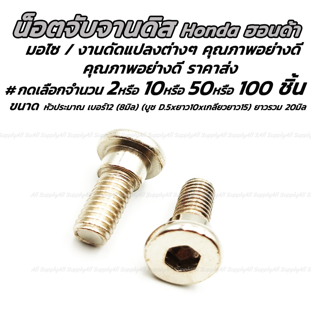 สกรูจับจานดิส ฮอนด้า (Honda) หัวเตเปอร์ #เลือก50/100 ชิ้น น็อตจับจานดิส จับจานดิส จานดิส สกรู น็อต น็อตถ่ายน้ำมันเครื่อง