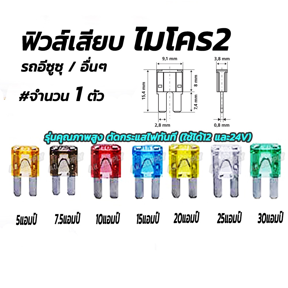 โปรลดพิเศษ (1ตัว) ฟิวส์เสียบ ไมโคร2 (อีซูซุ) เกรดเอ ฟิวส์ รุ่นเกรดA (5, 7.5, 10, 15, 20, 25, 30 แอมป์) ฟิวส์ ฟิวส์รถยนต์