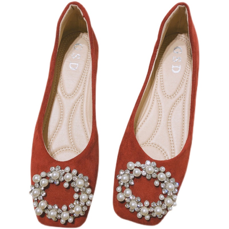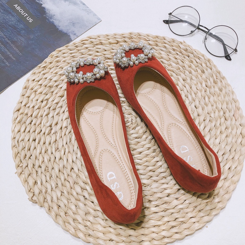 ขนาดใหญ่ขนาด(31-46)หญิงตั้งครรภ์รองเท้าแต่งงานรองเท้าแต่งงานย้อนยุคเวลาแบนสีแดงรองเท้าไม่เหนื่อยเท้ารองเท้าเดียวผู้หญิง เมล็ดถั่ว รองเท้าขนาดใหญ่46 45 44 43สบายพนักงานออฟฟิศเจ้