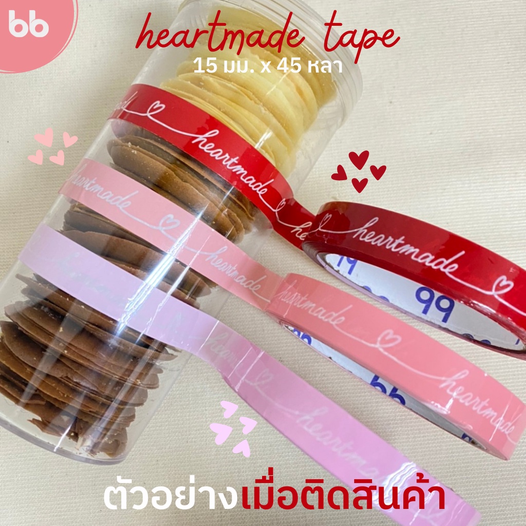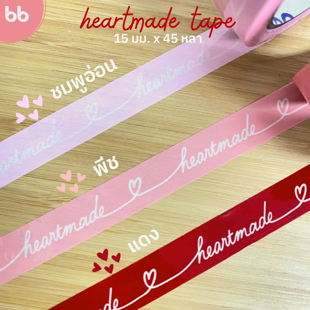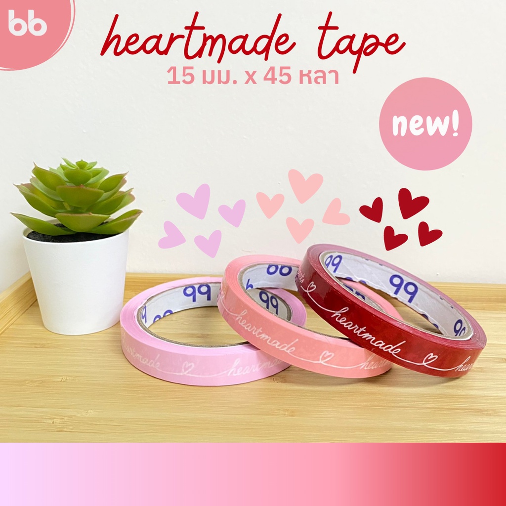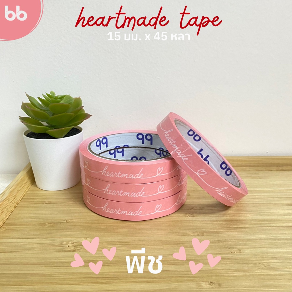 เทป Heartmade 💖 15 มม. 45 หลา (ม้วน) 4 สี ติดกล่องขนม เบเกอร์รี่ เทป For u OPP tape ปิดกล่อง ติดกล่อง