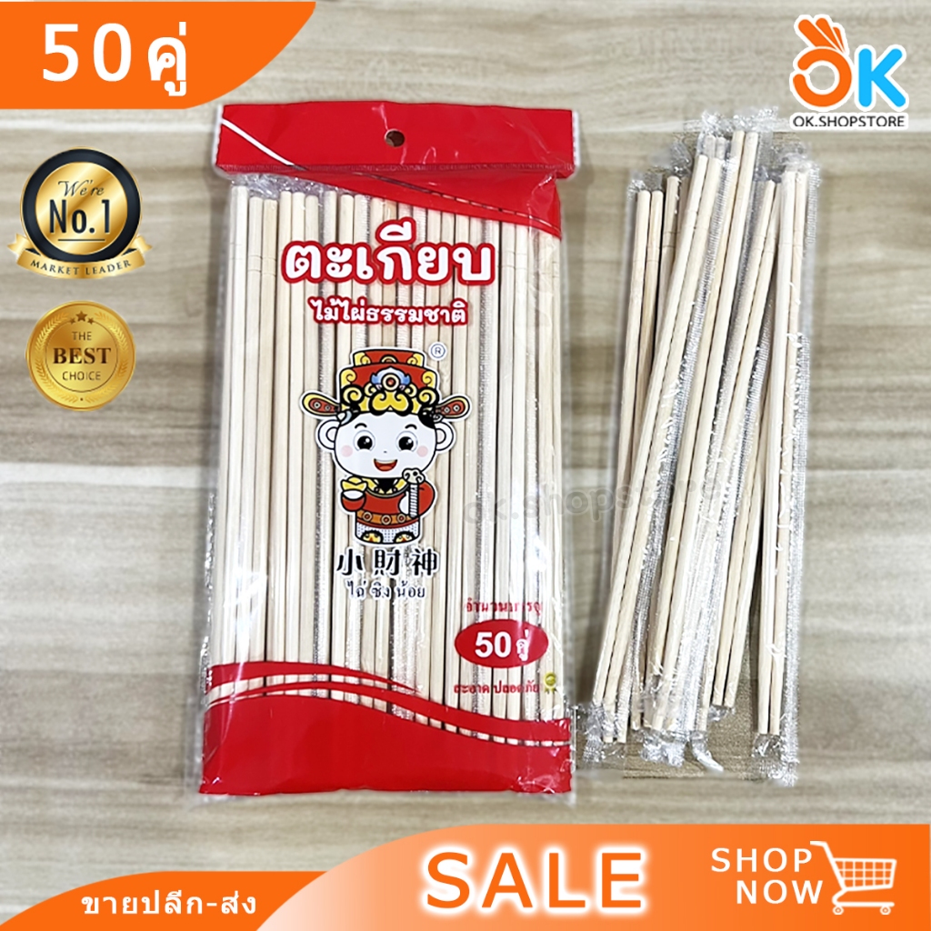 (50คู่) ตะเกียบ ไม้ไผ่ คุณภาพดี สะอาด ใช้แล้วทิ้ง ขนาด22cm.
