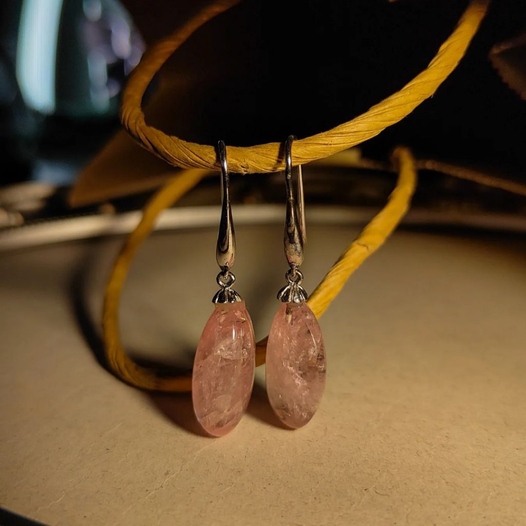 🌹ต่างหู Rose Quartz สวมใส่ง่าย เข้าได้กับทุกลุค