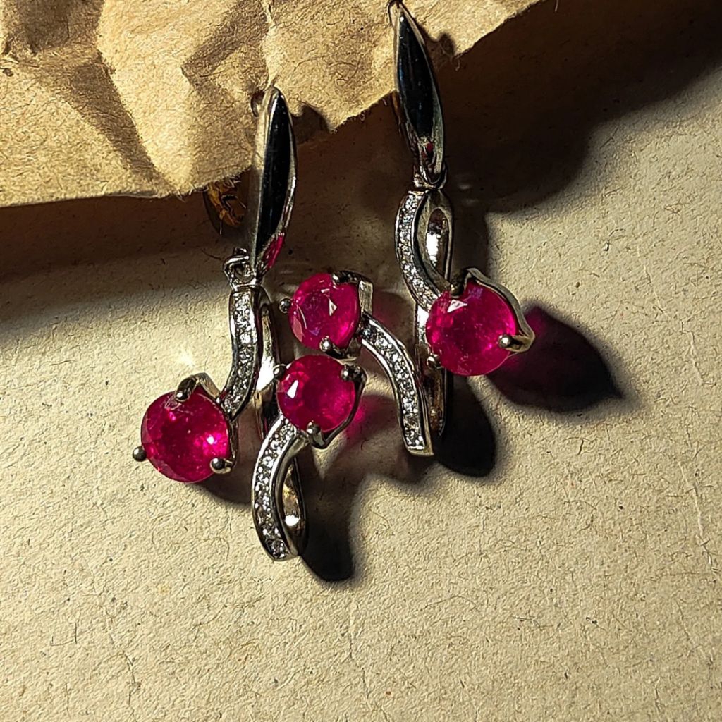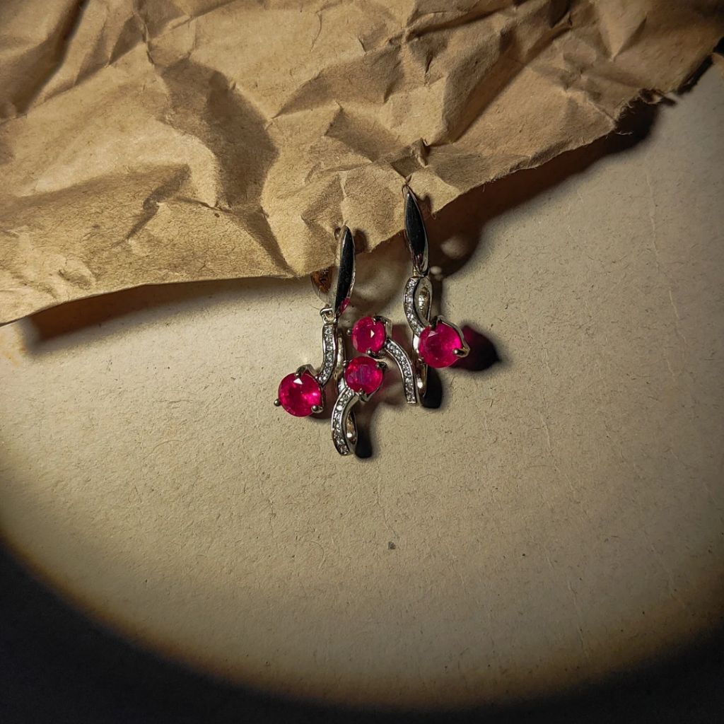 🌹ต่างหูเงินประดับทับทิม CZ ดีไซน์หรู อัญมณีแห่งพลังอำนาจ เสริมเสน่ห์ ความกล้าหาญ ความสำเร็จ โชคลาภ