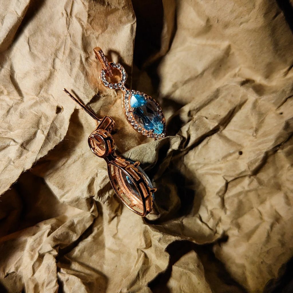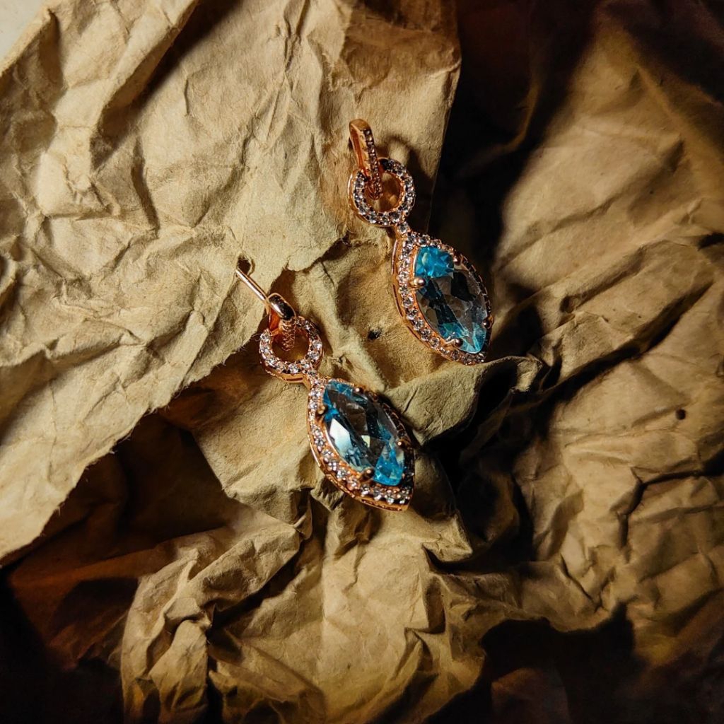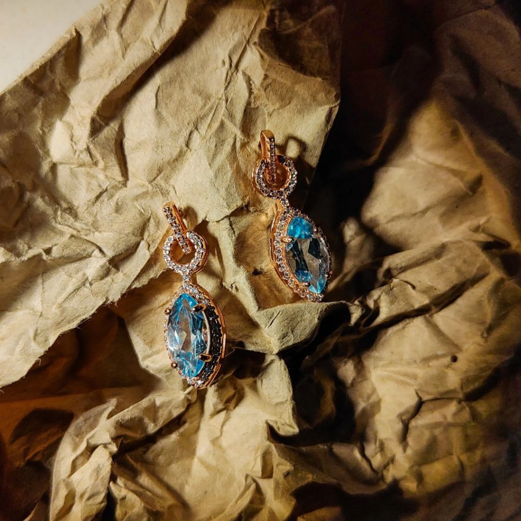 💎ต่างหู Blue Topaz ประดับ CZ สวมใส่ได้ทุกโอกาส