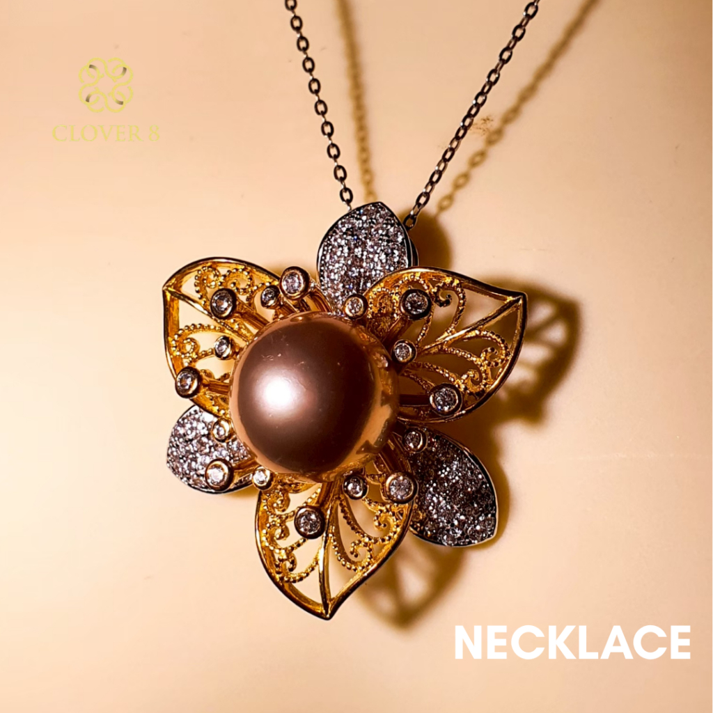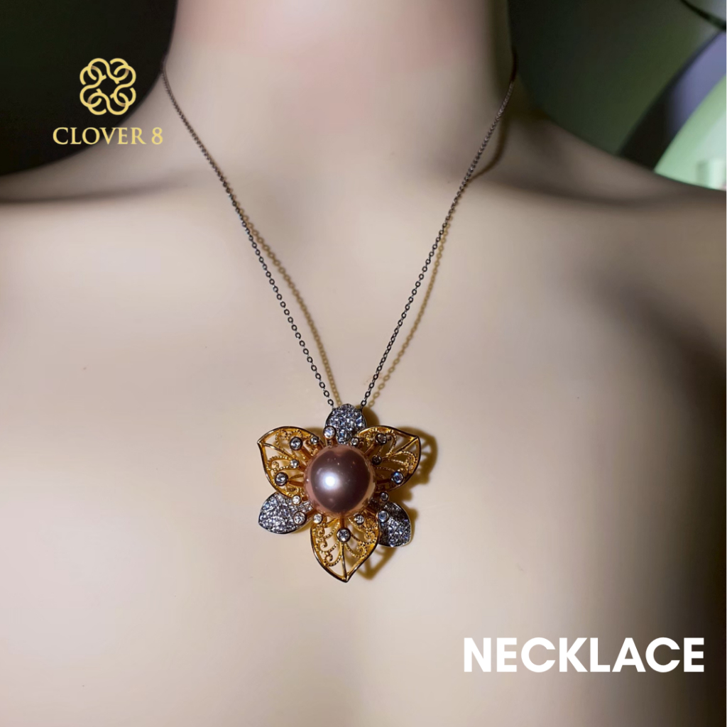สร้อยไข่มุก ทรงกลม ไข่มุกสีม่วง ไซส์ 12.7 mm มุกแท้ 100% มุกน้ำจืด ตัวเรือนเงิน92.5 Clover8jewelry