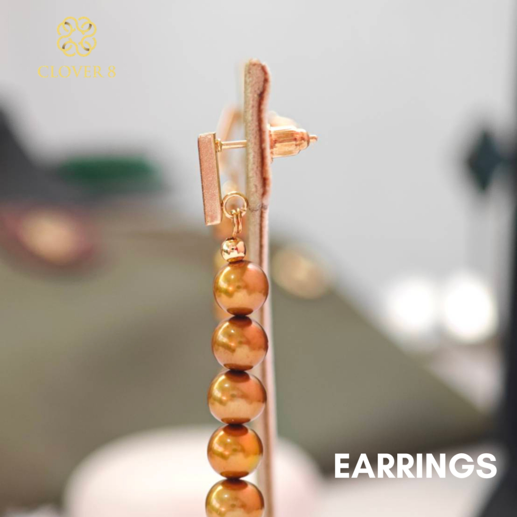 ต่างหูไข่มุก ทรงมันฝรั่ง ไข่มุกสีทอง ไซส์ 3.3mm มุกแท้100% มุกน้ำจืด Clover8jewelry
