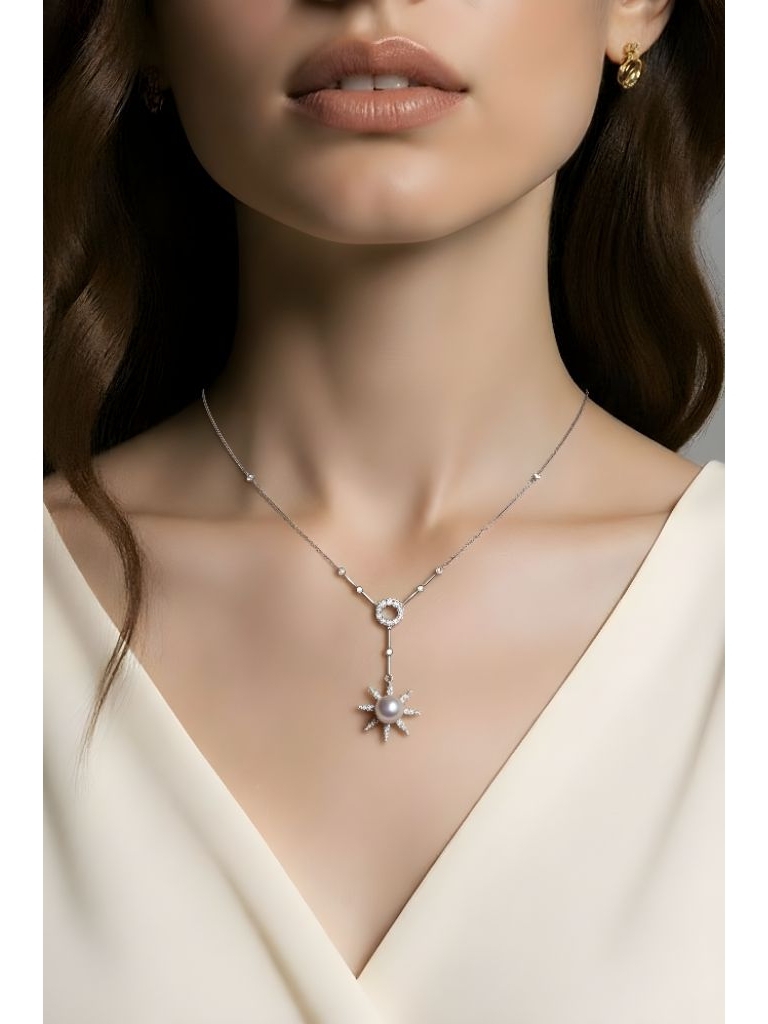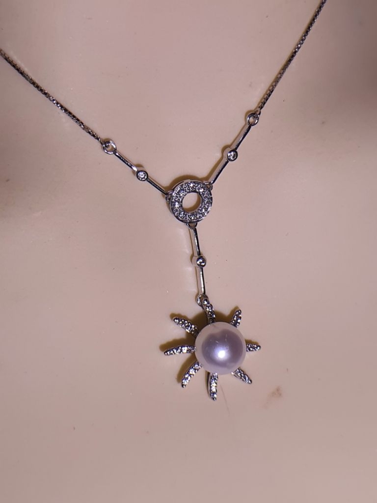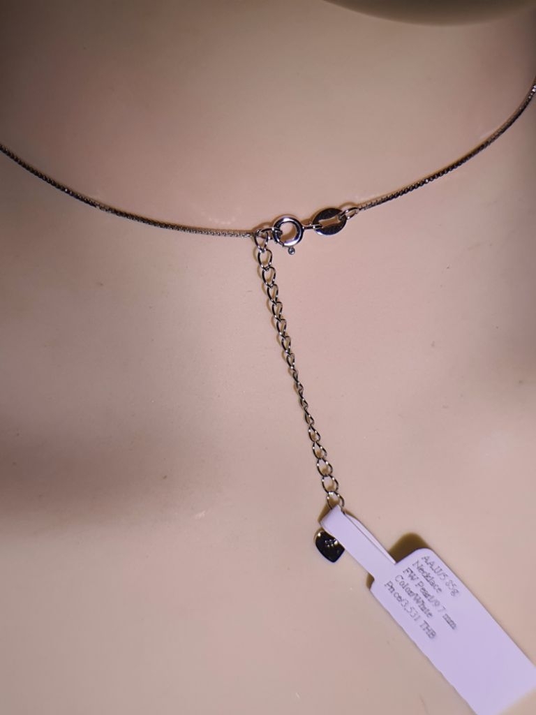 สร้อยไข่มุก ทรงกระดุม ไข่มุกสีขาว ไซส์ 9.7 mm มุกแท้ 100% มุกน้ำจืด ตัวเรือน เงิน92.5 Clover8jewelry