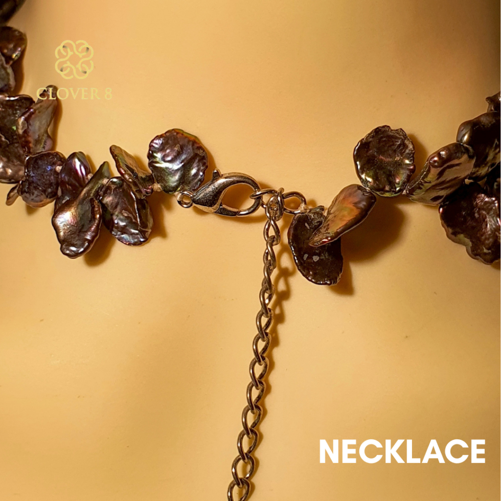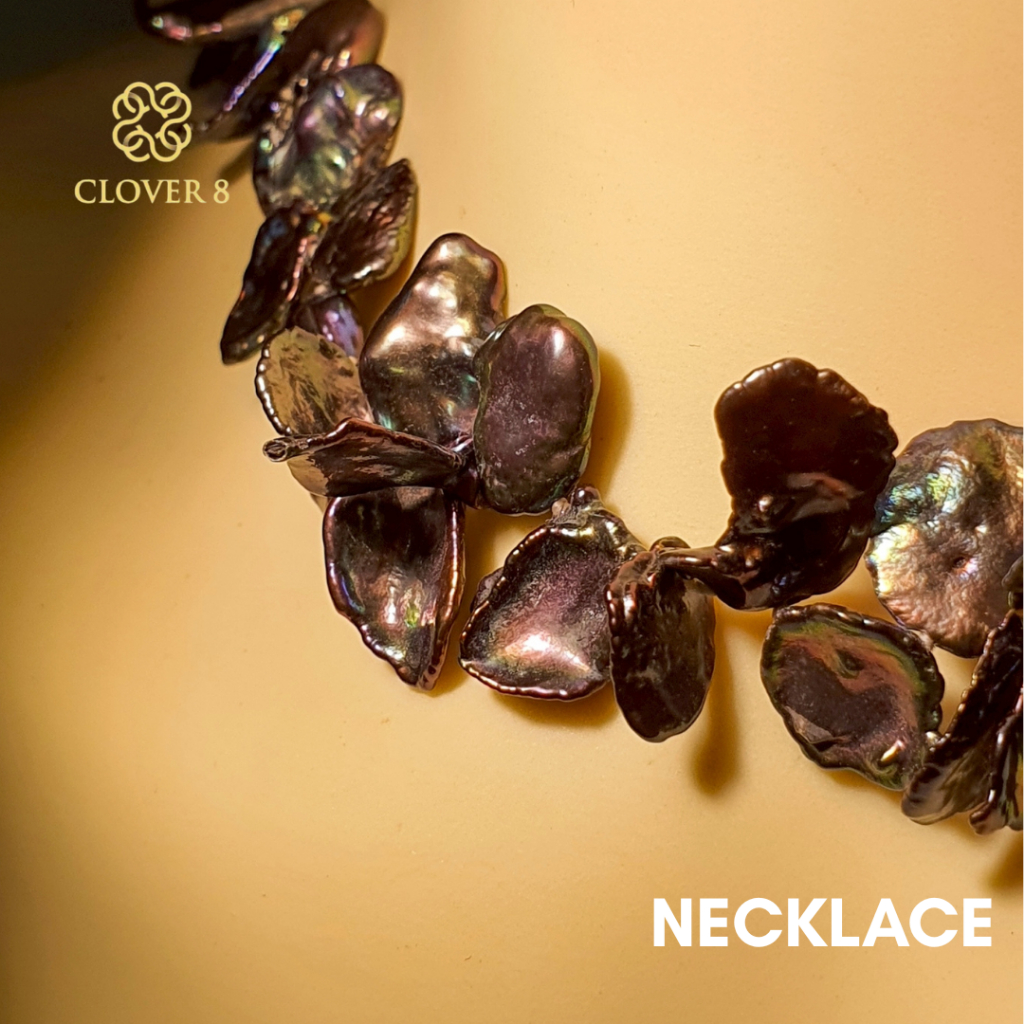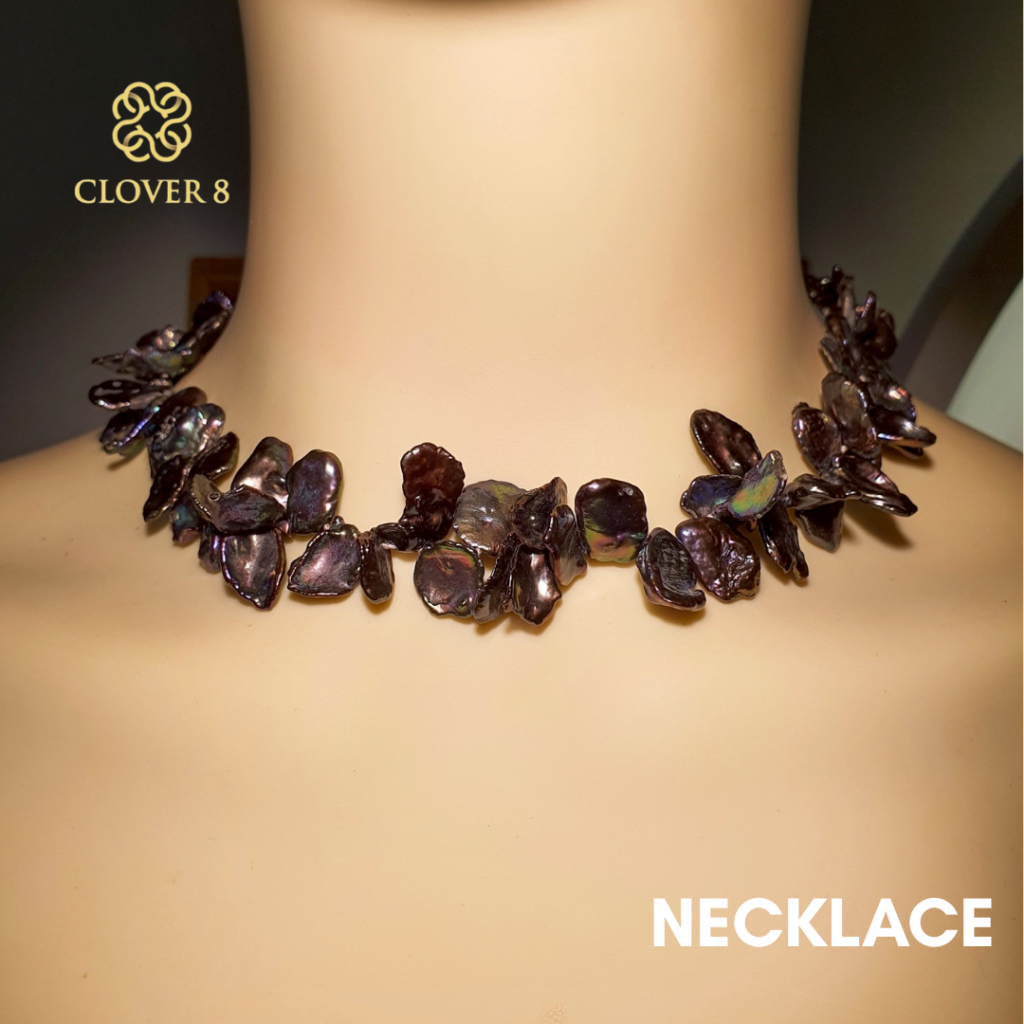 สร้อยไข่มุก ทรงคอนเฟลก ไข่มุกสีดำ ไซส์ 9 mm ไซส์รอบคอ18-20 นิ้ว มุกแท้ 100% มุกน้ำจืด Clover8jewelry