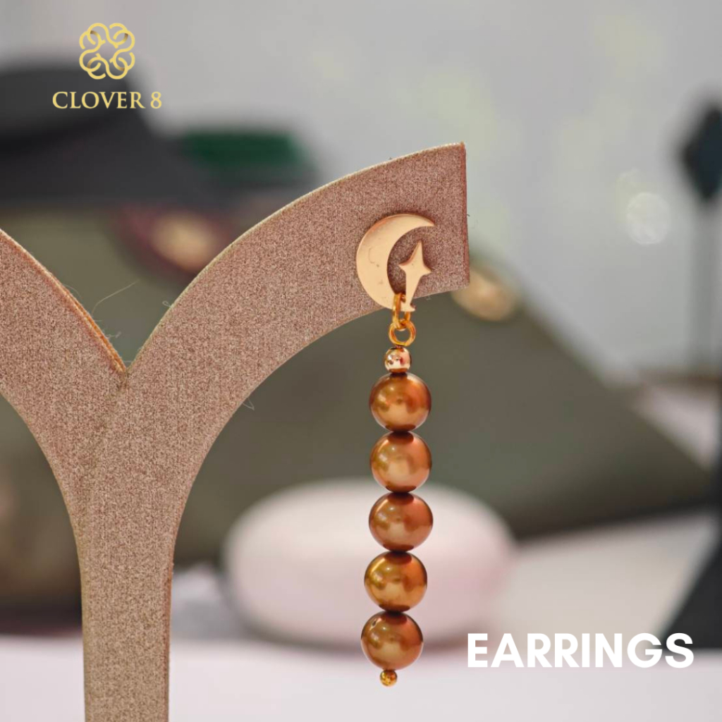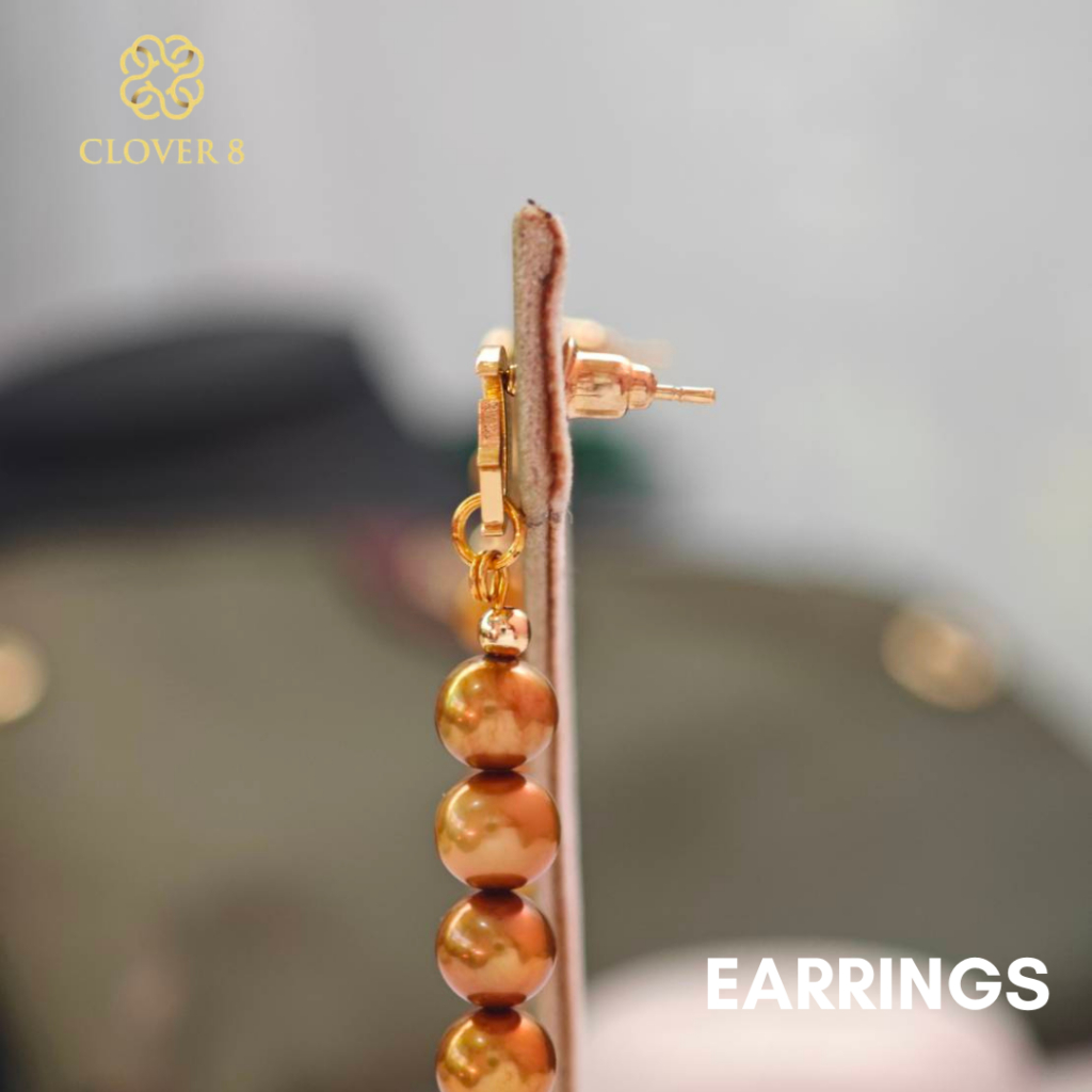 ต่างหูไข่มุก ทรงมันฝรั่ง ไข่มุกสีทอง ไซส์ 3.3mm มุกแท้100% มุกน้ำจืด Clover8jewelry