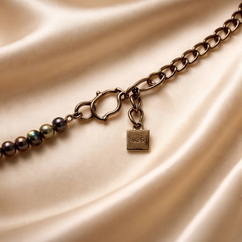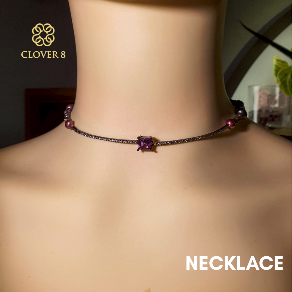 สร้อยไข่มุก ทรงมันฝรั่ง ไข่มุกหลากสี ไซส์3.8mm มุกแท้100% มุกน้ำจืด หินพลอยอเมทิตส์Clover8jewelry