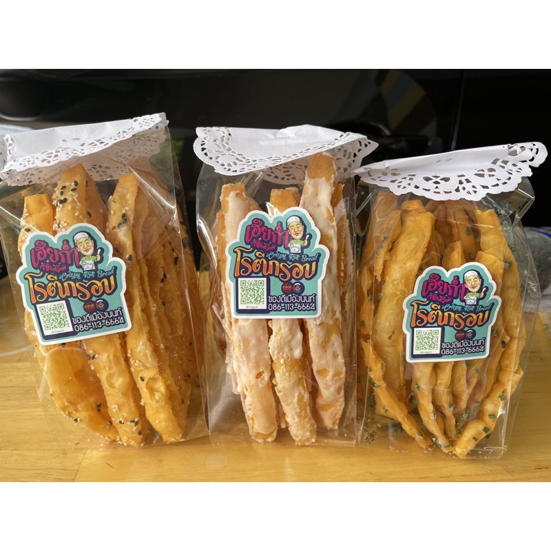 เฮียก่ำโรตีกรอบ ของดีเมืองนนท์ฉบับโอท็อป 3 รส (รสไวท์ช็อคโกแลต, รสงาขาวงาดำ และรสต้นหอม) ขนมจกเพลินๆ