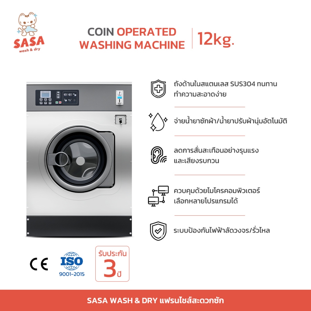 เครื่องซักผ้า เครื่องซักผ้าหยอดเหรียญ รุ่น SWQ Series Coin Operated Washing Machine ขนาด 12KG สำหรับเปิดร้านซักผ้า