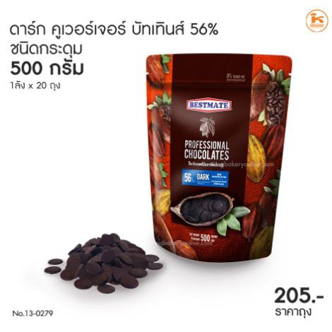 กระดุม56% เบสเมท ดาร์ชอคโกแลต BESTMATE Couverture Buttons DARK 56% / 500ก.