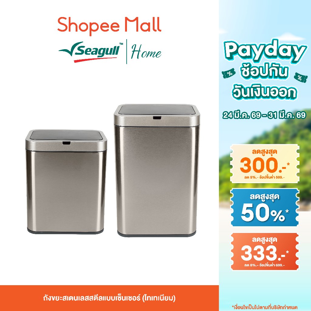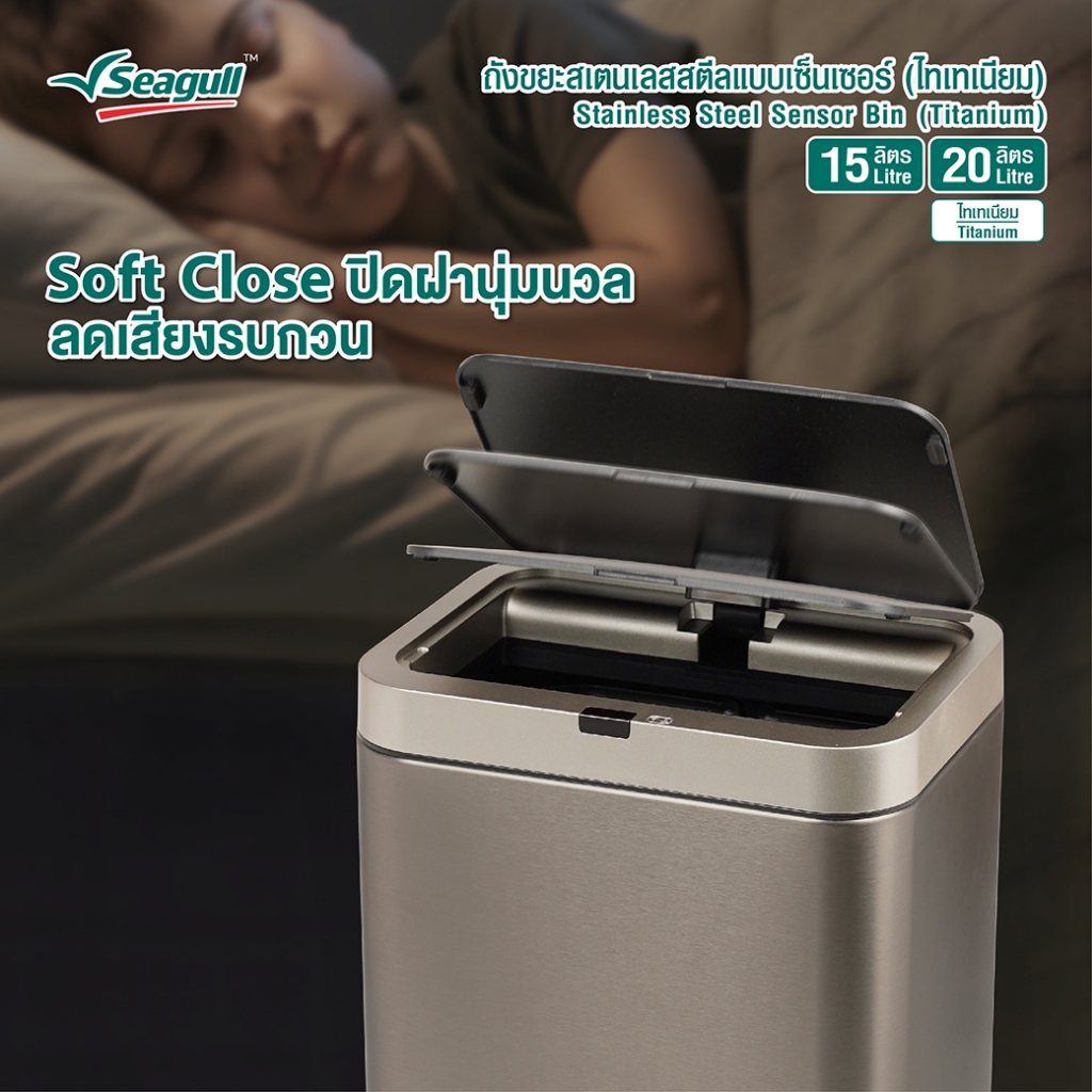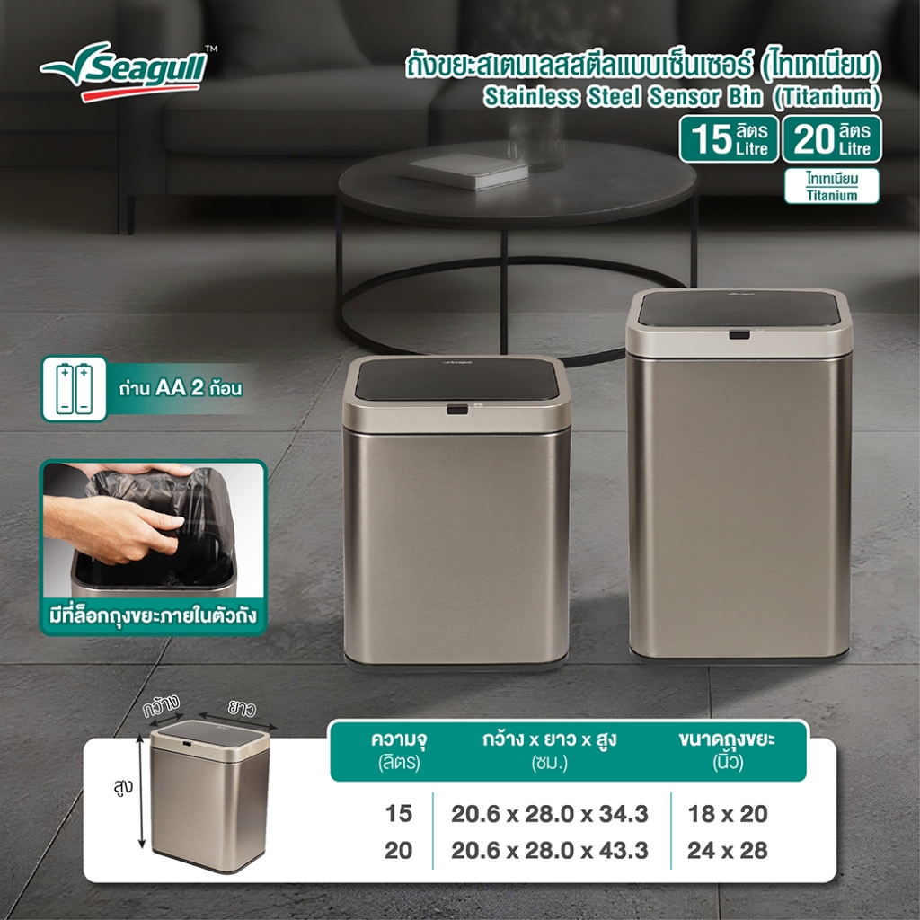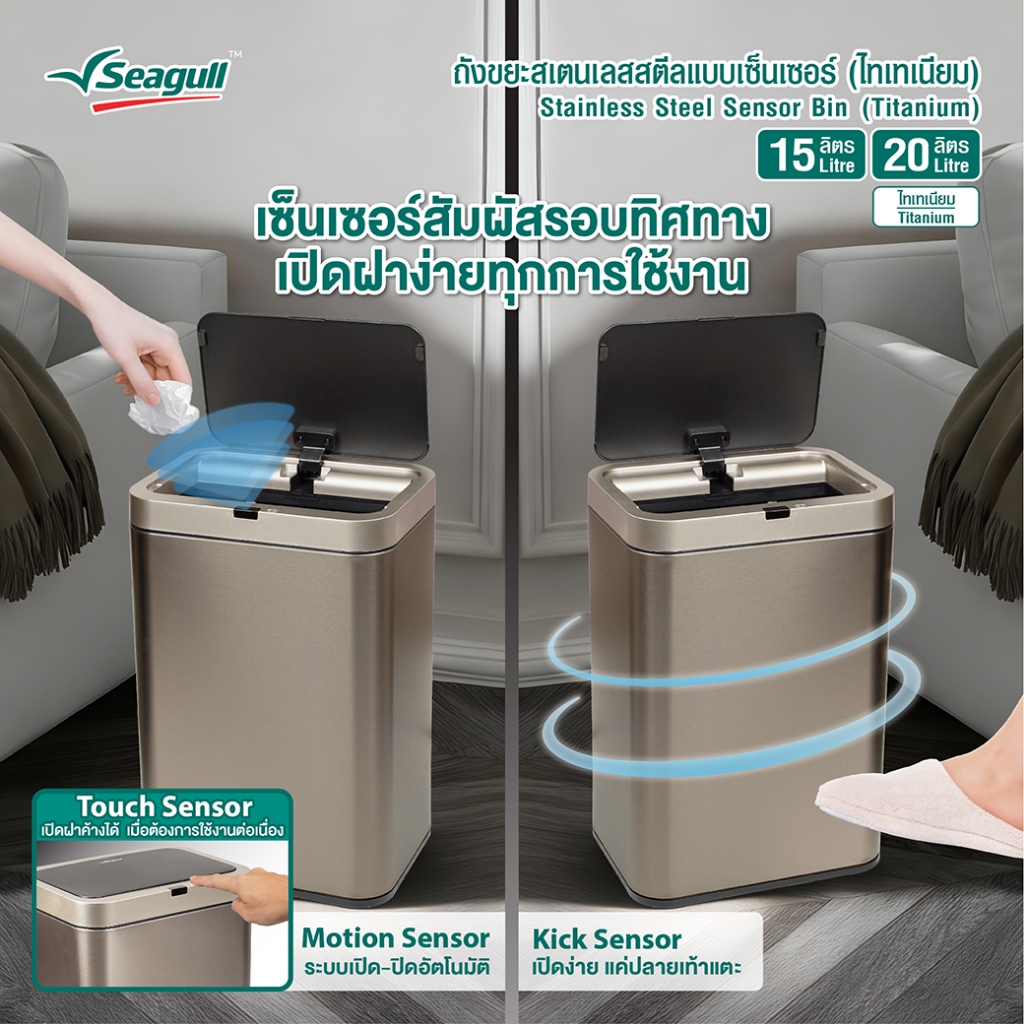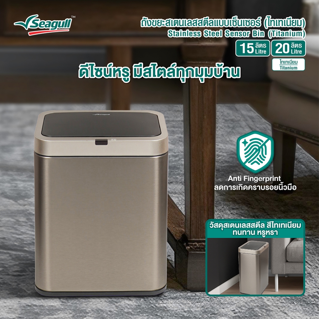 Seagull ถังขยะสเตนเลสสตีลแบบเซ็นเซอร์ (ไทเทเนียม) Stainless Steel Sensor (ขนาด 15 ลิตร/20 ลิตร)