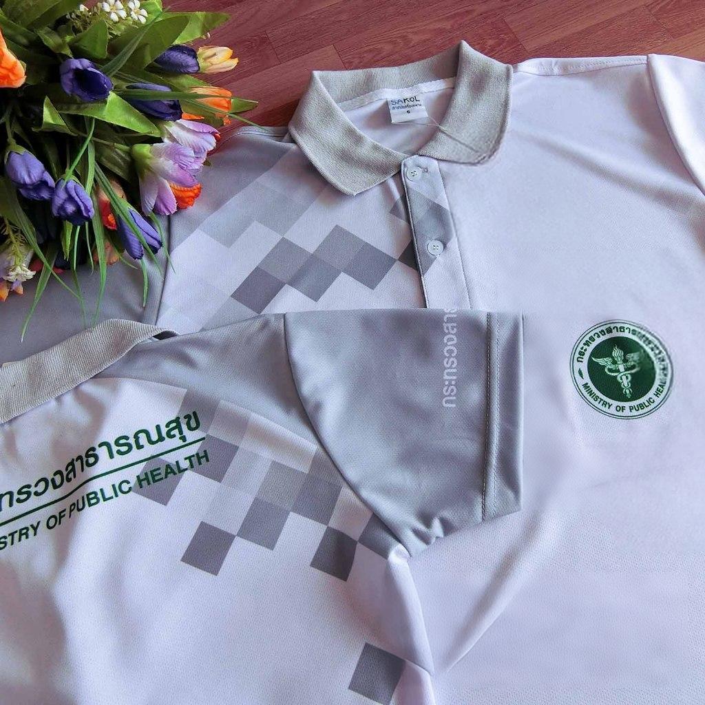 เสื้อโปโลสาธารณสุข สีขาว แขนสั้น งานราชการแท้ ใส่ทำงานสุภาพ ผ้านุ่ม ใส่สบาย ลดราคาล้างสต๊อก จำนวนจำกัด พร้อมส่ง