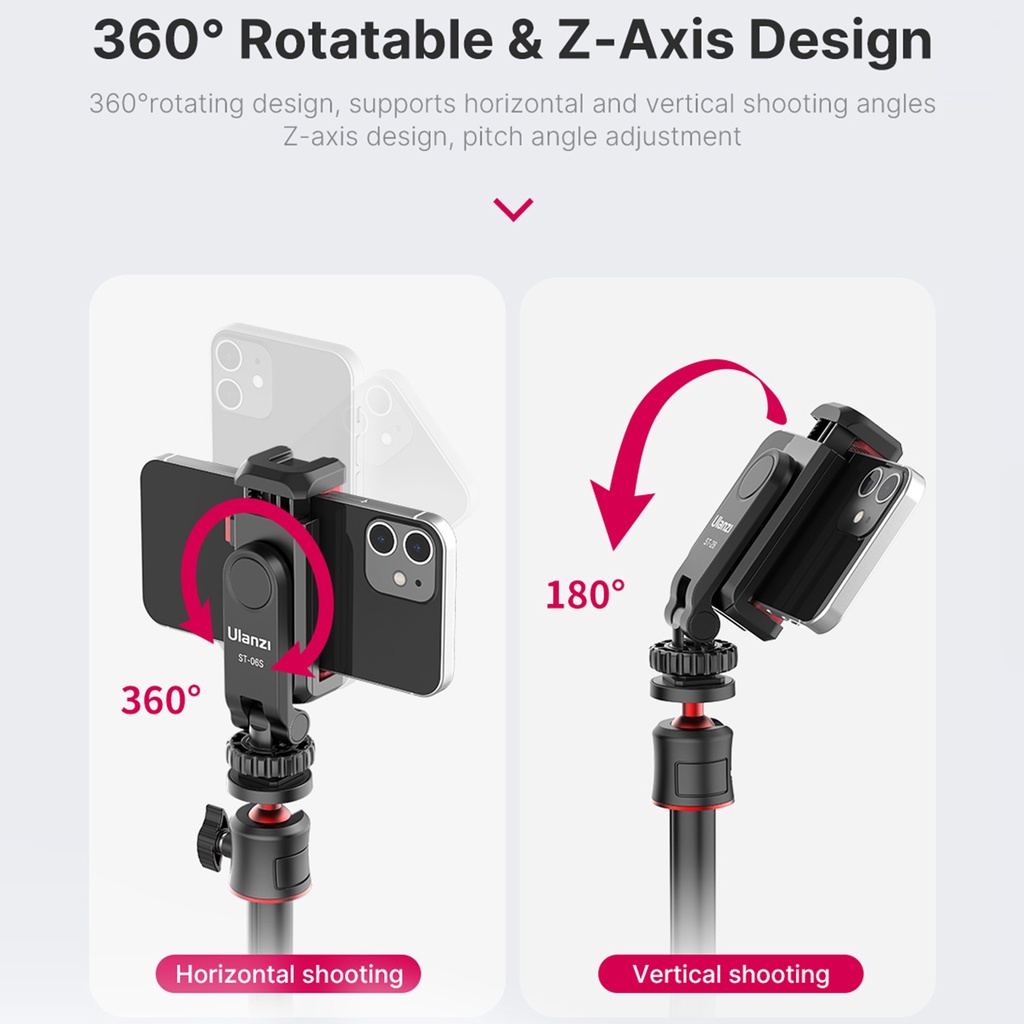 Ulanzi ST-06S ที่วางโทรศัพท์อเนกประสงค์หนีบโทรศัพท์ขาตั้งกล้อง 360° หมุนได้พร้อมเมาท์รองเท้าเย็นคู่สําหรับสมาร์ทโฟน วิดีโอบล็อก เซลฟี่ สตรีมมิ่งสดบันทึกวิดีโอ
