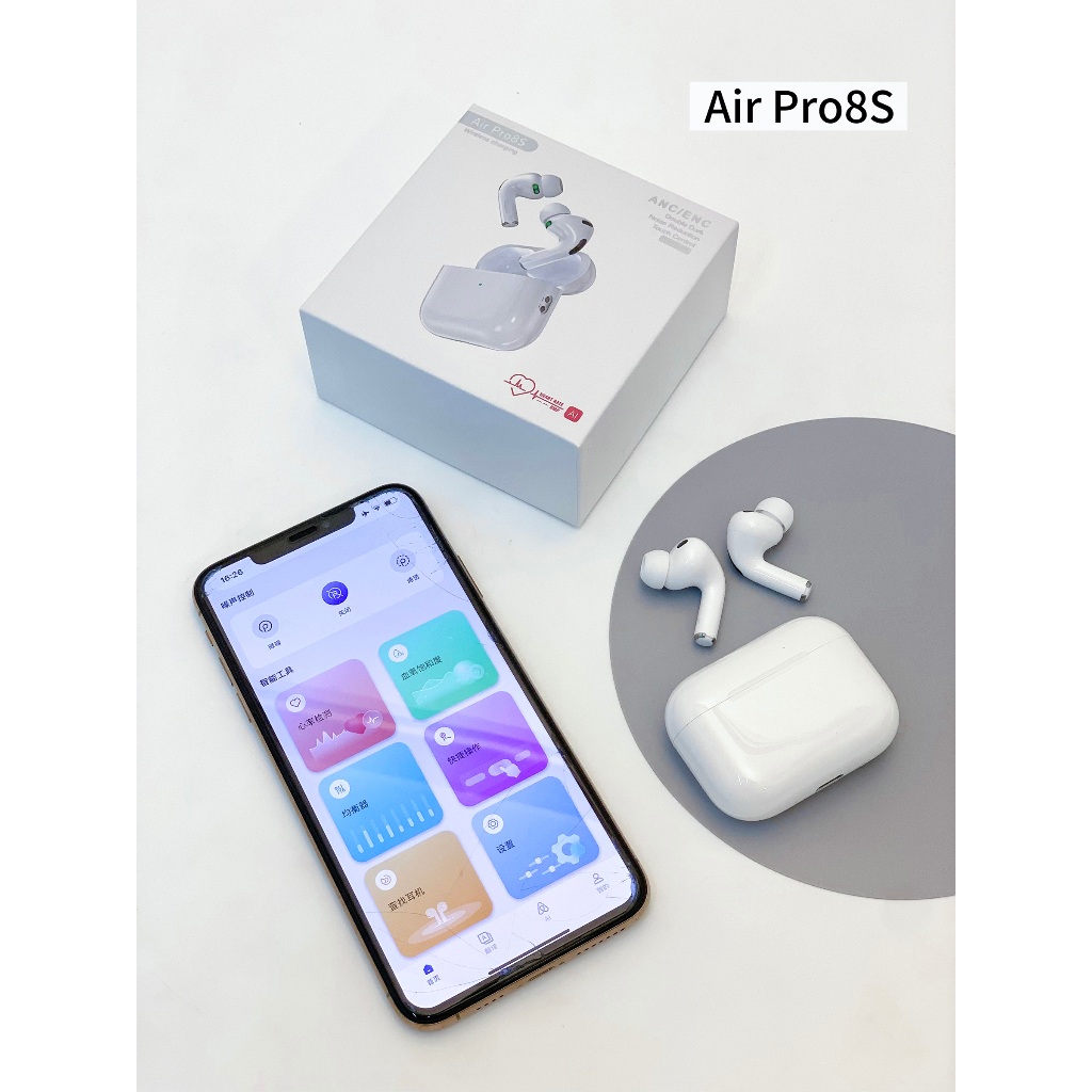 Air pro8s AI ชุดหูฟังแปล ไร้สายบลูทูธ ANCตัดเสียงรบกวน หูฟังบลูทูธ ดอัตราการเต้นของหัวใจ คุณภาพเสียงไฮไฟ พร้อมไมโครโฟน