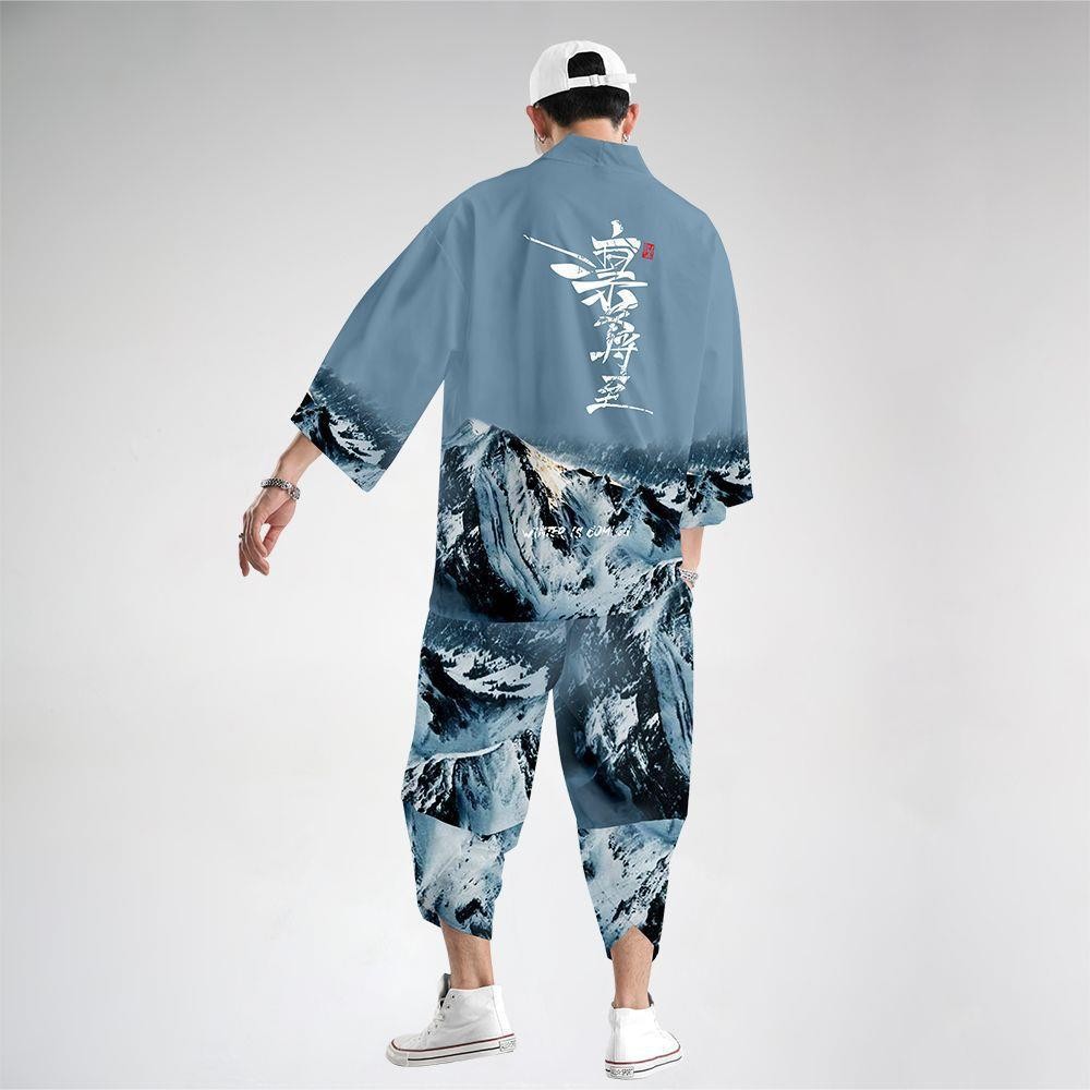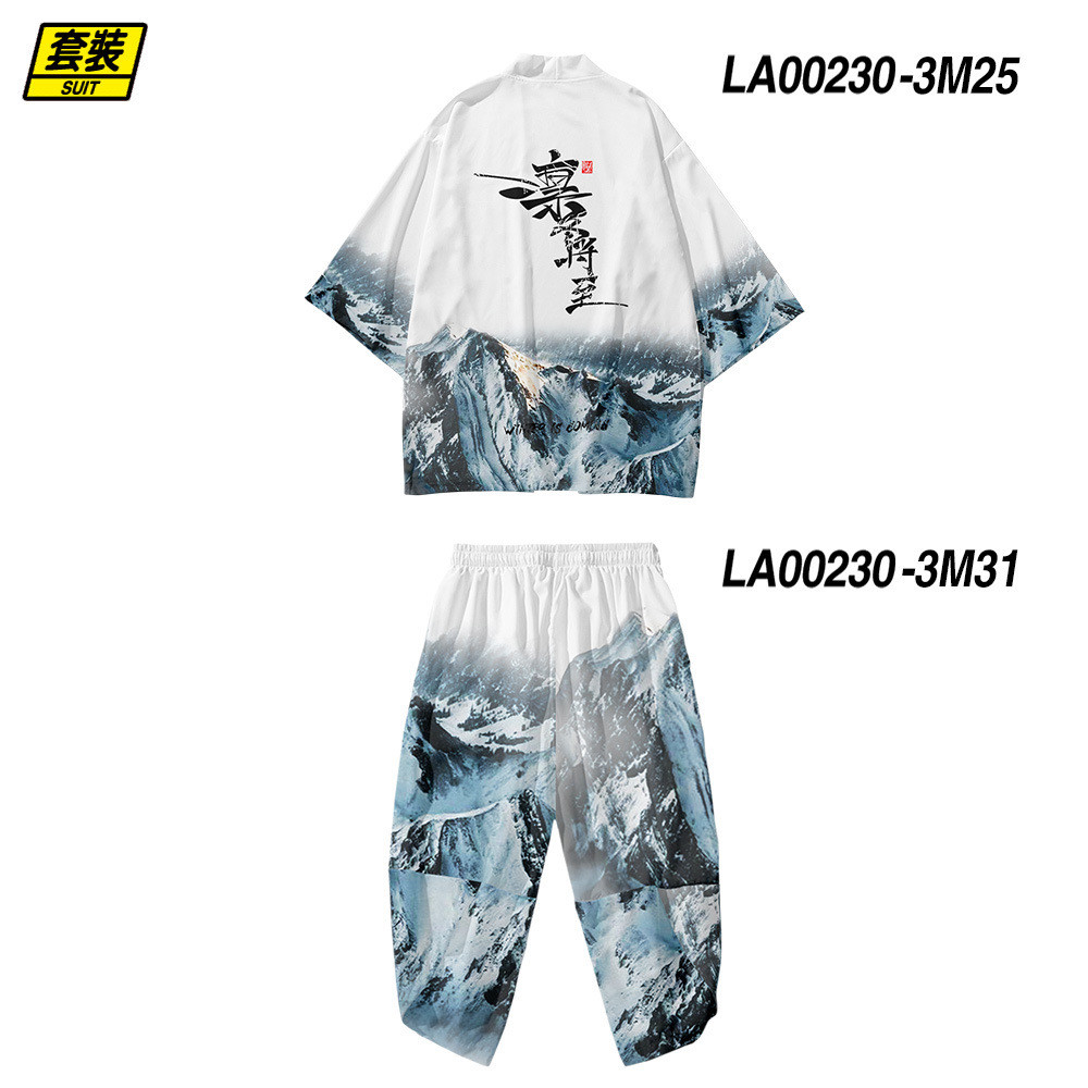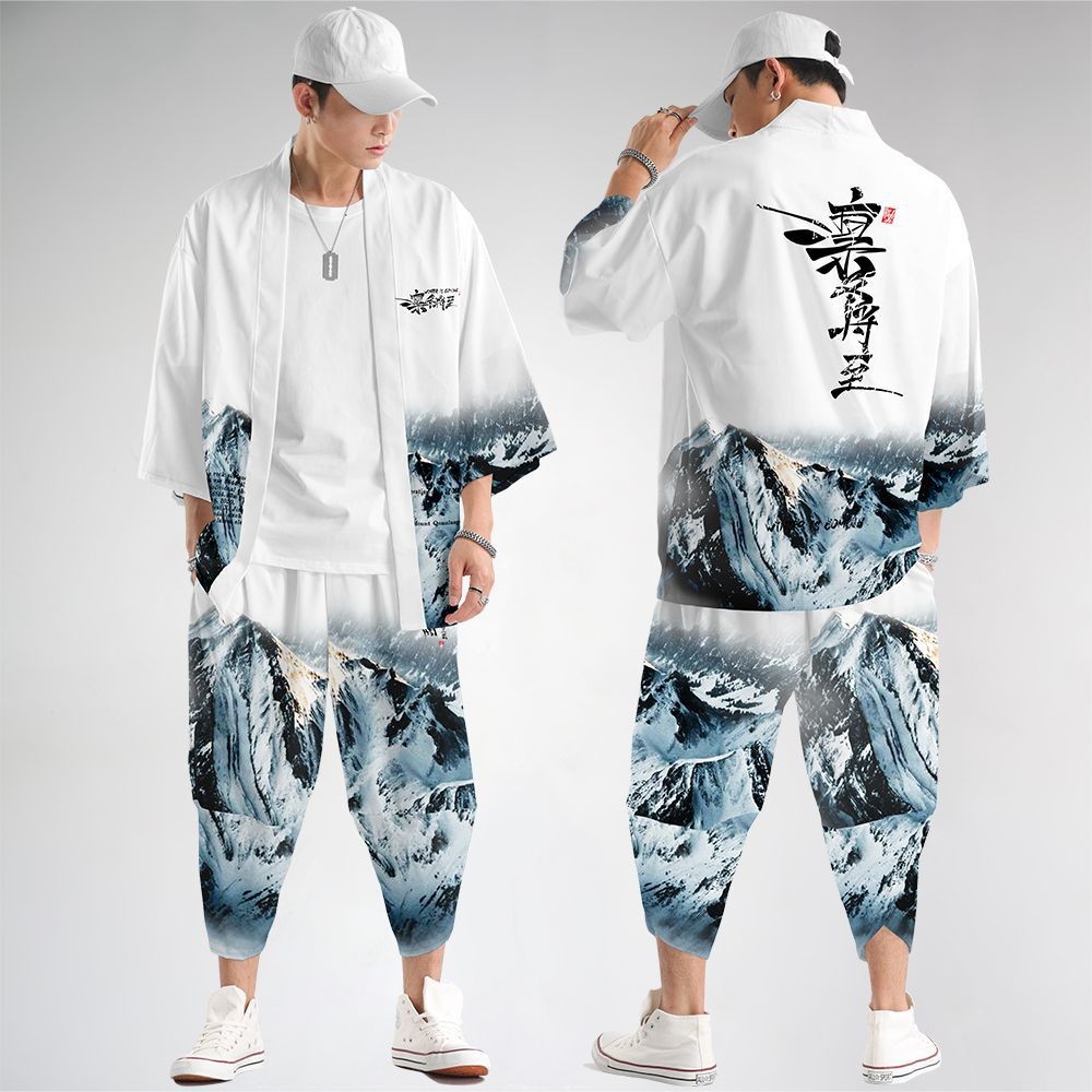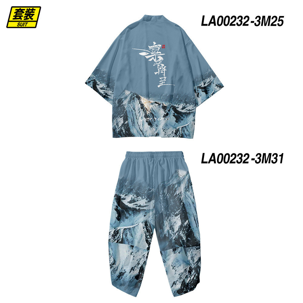 ชุดสองชิ้น XXS-5เอ็กแอล หลวมญี่ปุ่นคาร์ดิแกนผู้หญิงผู้ชายคอสเพลย์ยูกาตะเสื้อผ้าฮาราจูกุซามูไรกิโมโน + กางเกงชุด