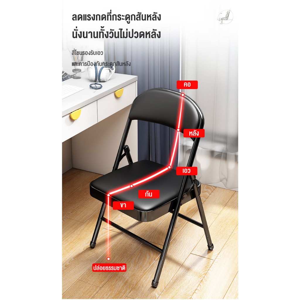 【Siam】เก้าอี้พับ มีพนักพิง เก้าอี้สำนักงาน ขาเหล็ก ใช้ได้ในห้องอาหาร ห้องนั่งเล่นและงานทำงาน รับน้ำหนัก300KG