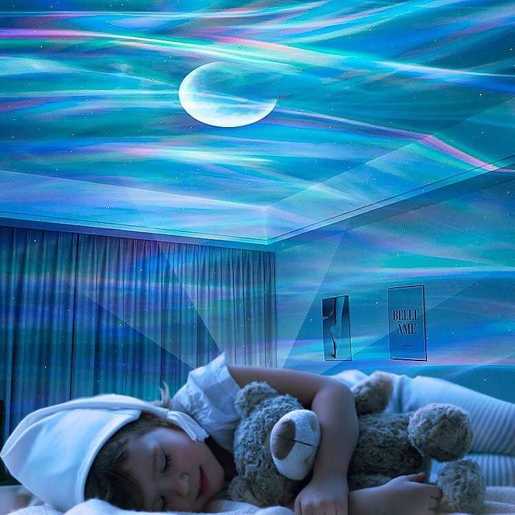 สมาร์ทกราฟฟิตี แอป แสงเหนือเต็มไปด้วยดวงดาวบนท้องฟ้าแสงเลเซอร์ฉายแสงไฟกลางคืนระลอกน้ําแสงอารมณ์บรรยากาศแสง