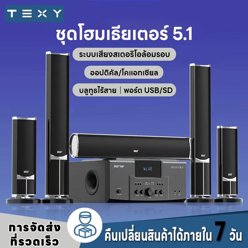 TEXY ชุดโฮมเธียเตอร์ 5.1 ระบบเสียงรอบทิศทาง พร้อมช่องต่อ Optical/Coaxial บลูทูธไร้สาย และพอร์ต USB/SD Theater