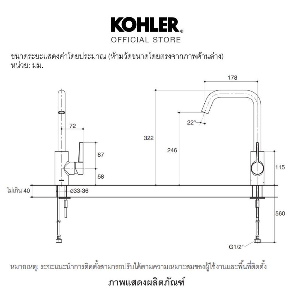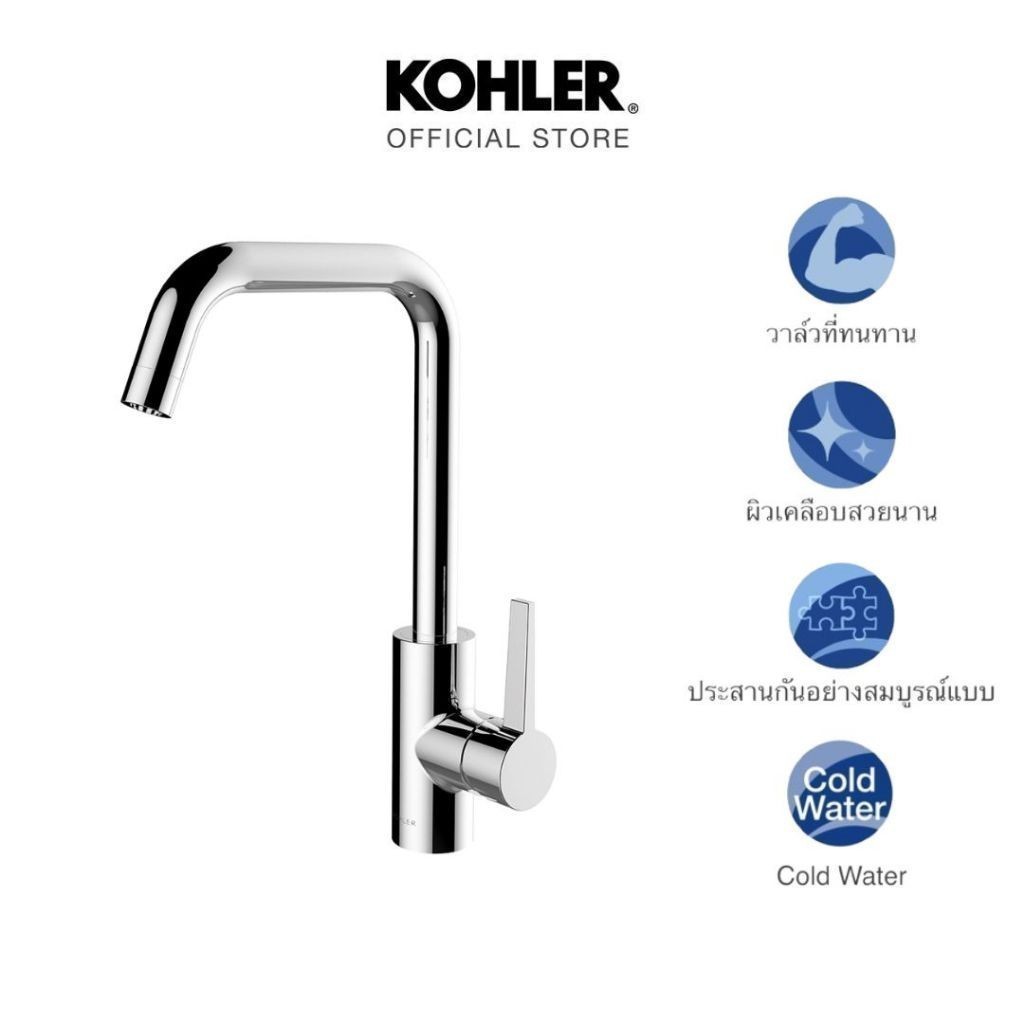 KOHLER Taut cold only kitchen faucet ก๊อกน้ำเย็นอ่างล้างจาน รุ่นทอธ สีโครมเมี่ยม K-21370T-4CD-CP