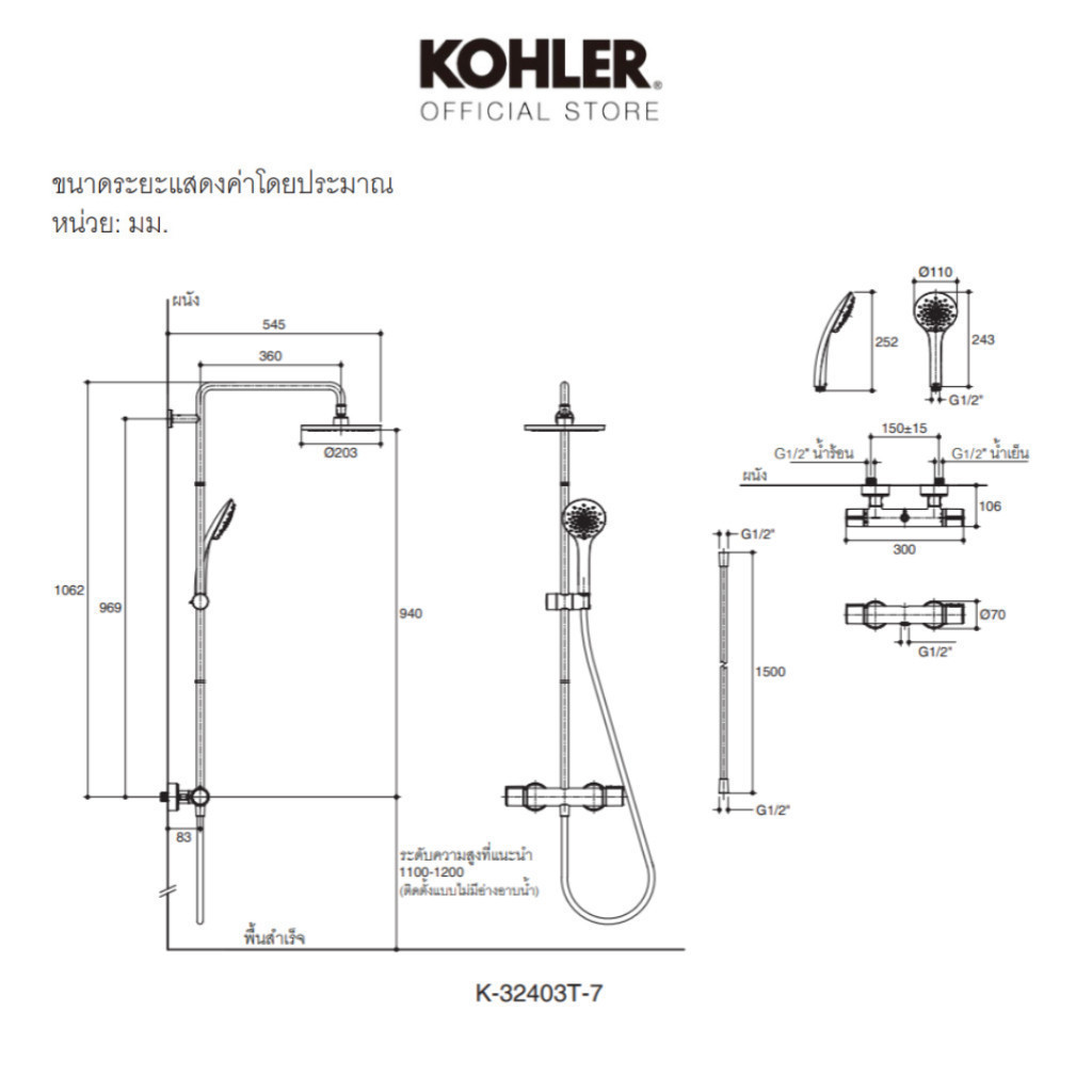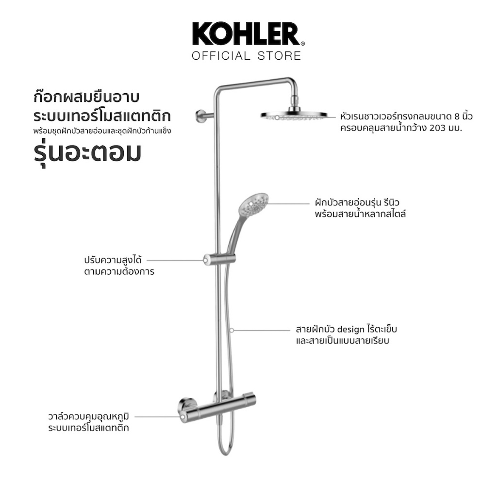 KOHLER Atom 2-way TH shower column ก๊อกผสมยืนอาบพร้อมชุดฝักบัว รุ่นอะตอม K-32403T-7-CP