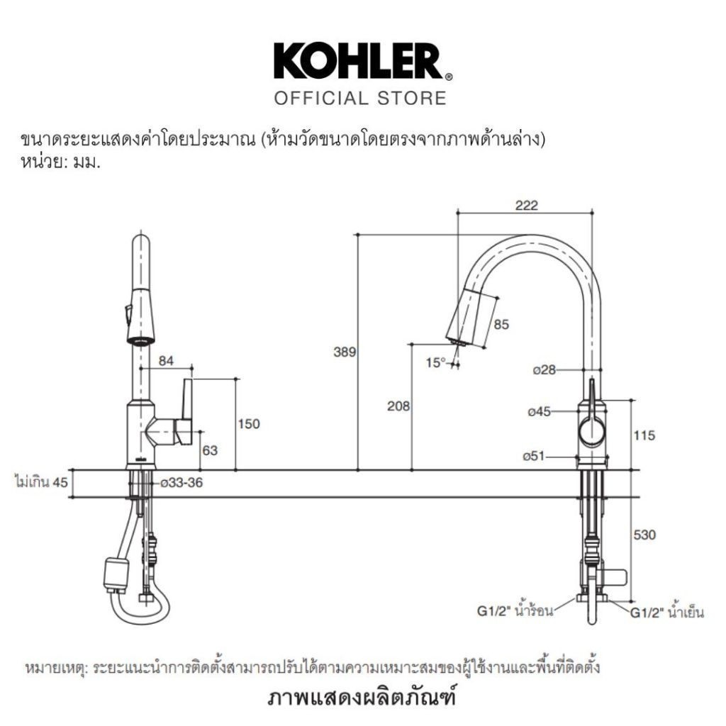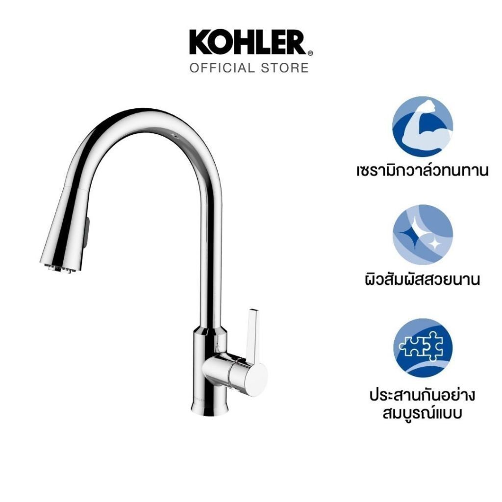 KOHLER Taut pulldown spray kitchen faucet ก๊อกผสมอ่างล้างจานชนิดหัวฝักบัว รุ่นทอธ K-21366T-4-CP
