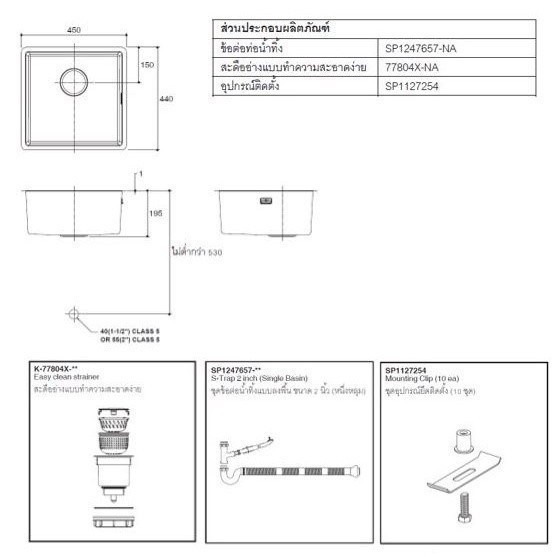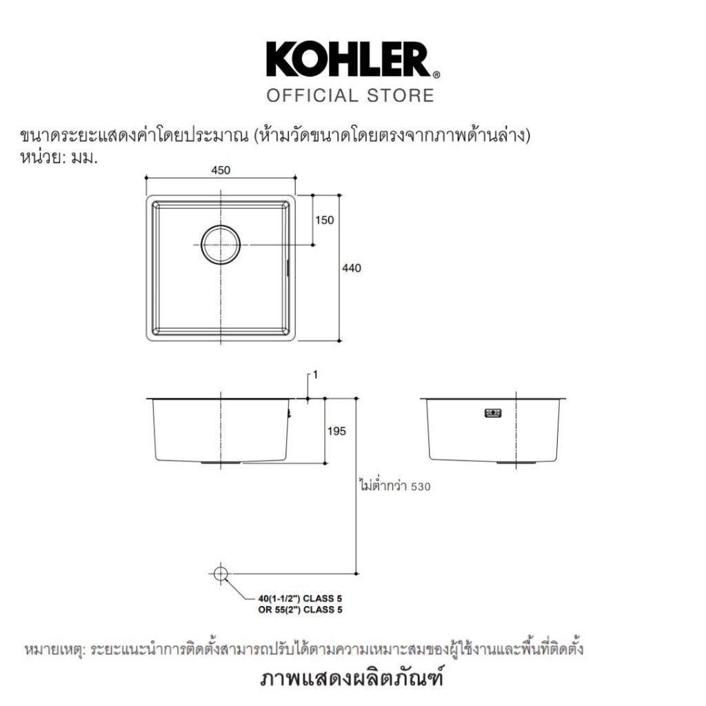 KOHLER (จัดส่ง 5-7 วัน) Prologue R10 kitchen sink อ่างล้างจาน 1 หลุม รุ่นโปรล็อก อาร์เท็น K-23014X-H-NA