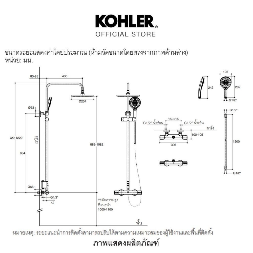 KOHLER Accliv 2 Way thermostatic shower column ก๊อกผสมยืนอาบระบบเทอร์โมสแตทติก รุ่นแอคลิฟ K-33099T-9-CP