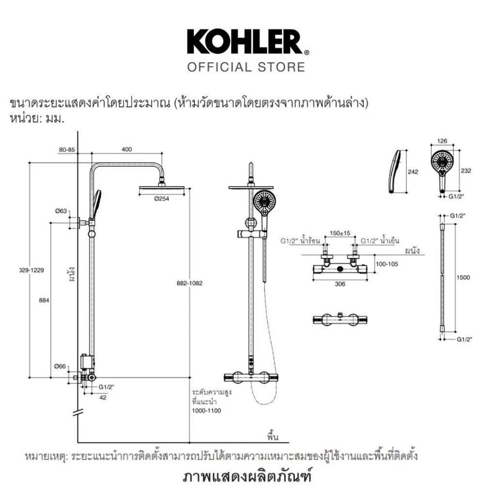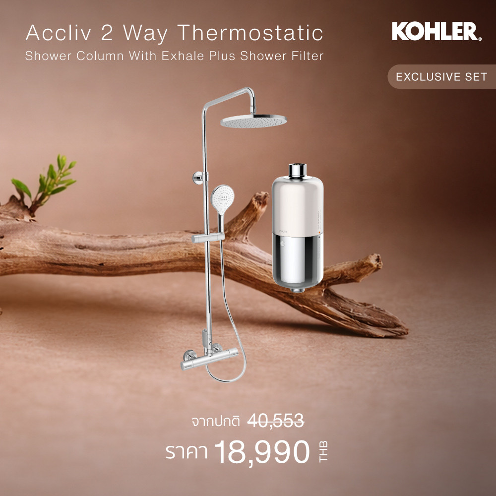 KOHLER (Exclusive Set) Accliv 2 Way thermostatic shower column + Exhale Plus shower filter K-33099T-9-CP/R21812X-CP