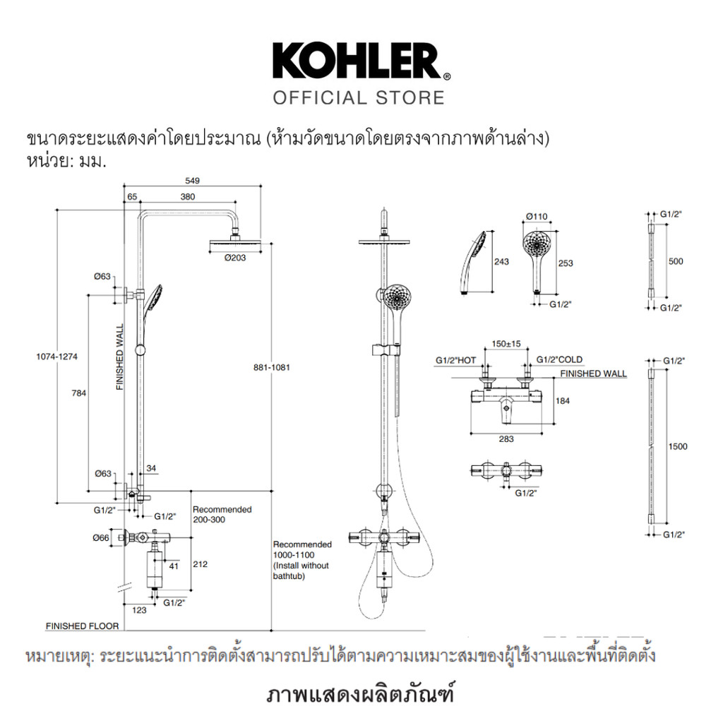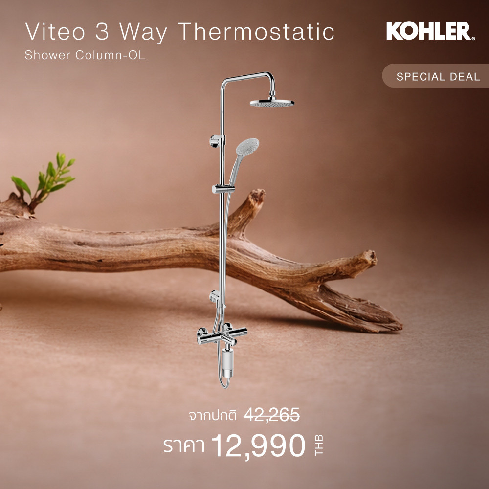 KOHLER (Special deal) Viteo 3 way thermostatic shower column-OL ก๊อกผสมยืนอาบลงอ่าง พร้อมชุดฝักบัวสายอ่อน K-26471T-9-CP