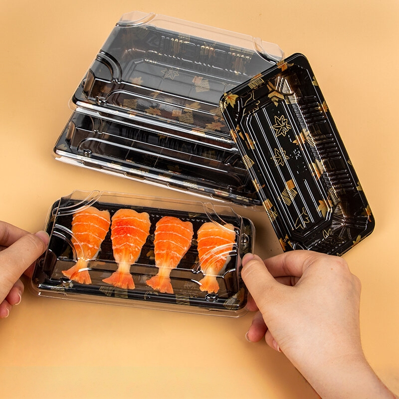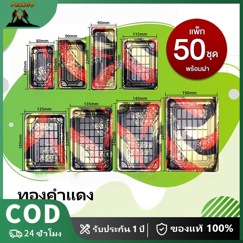 【PeakGO】(50ใบ) กล่องซูชิ ถาดซูชิ อาหารญี่ปุ่น TakeAway Sashimi ถาดซาซิมิ ถาดแซลม่อน Salmon พลาสติก