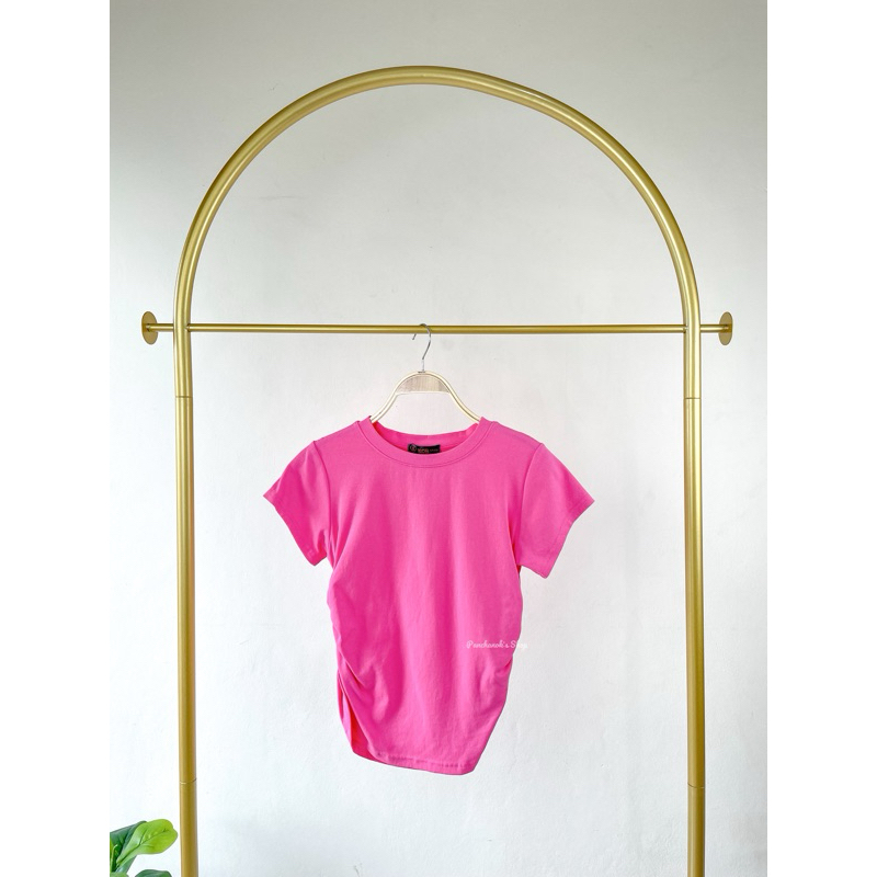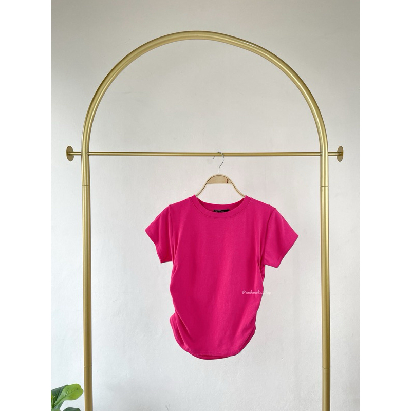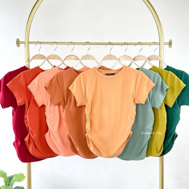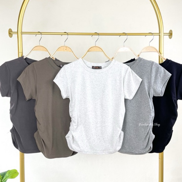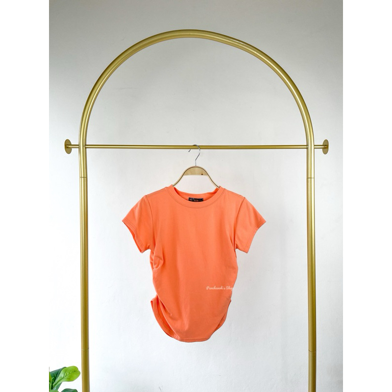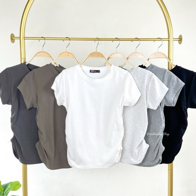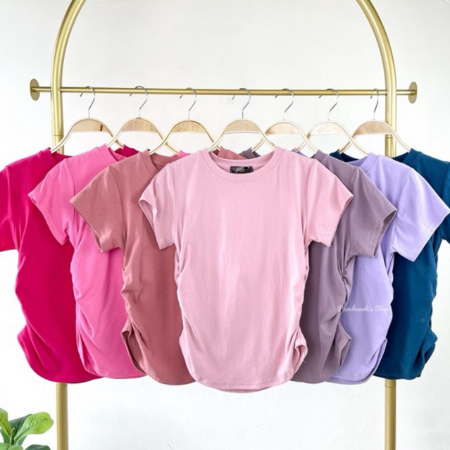(📢โล๊ะสต็อก) เสื้อยืดคอกลมเอวจั๊มสีพื้น ผ้าคอตตอนยูนิ พลางหุ่น