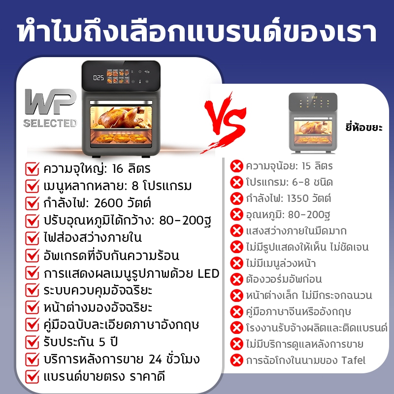 WP Air Fryer หม้อทอดไร้น้ํามัน ความจุขนาดใหญ่ 16L 2600W หม้อทอดไร้น้ำมันอัจฉริยะ AI KQZG-02 ตู้อบลมร้อน