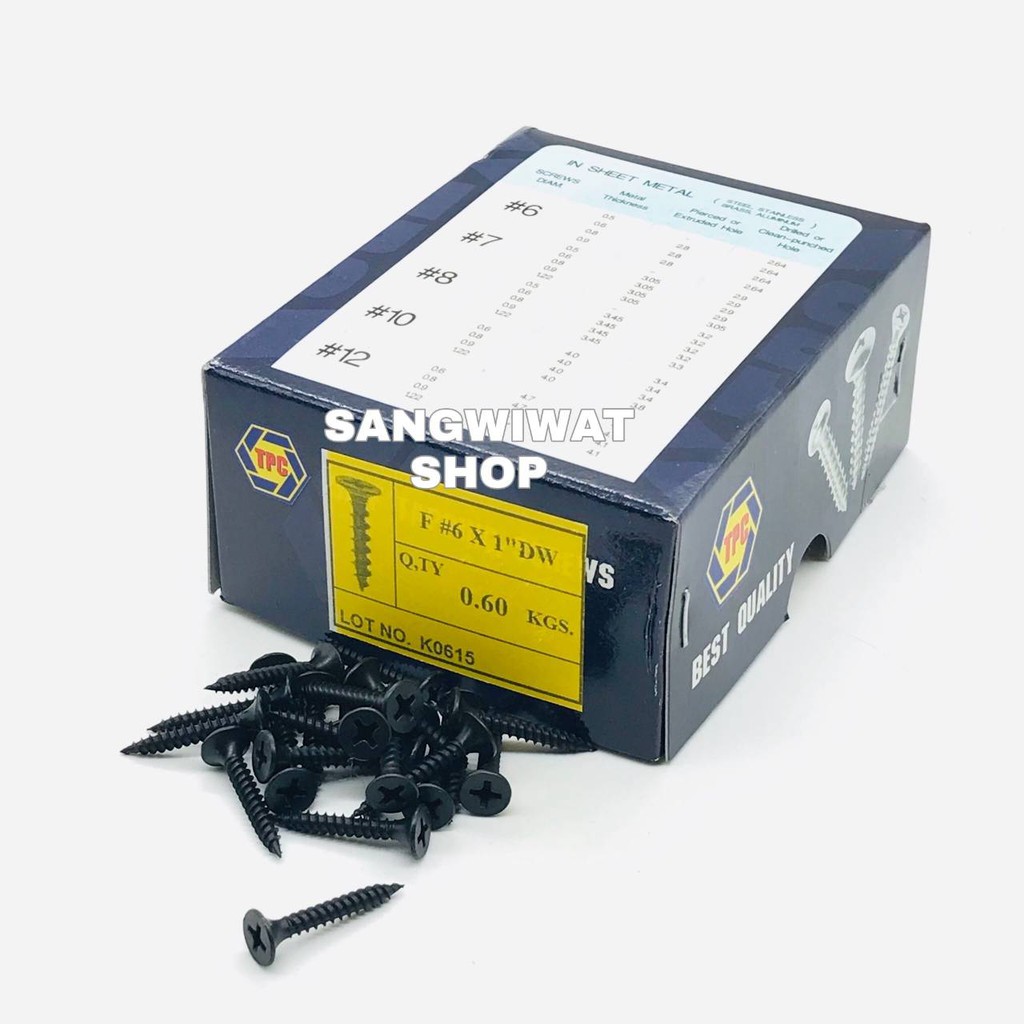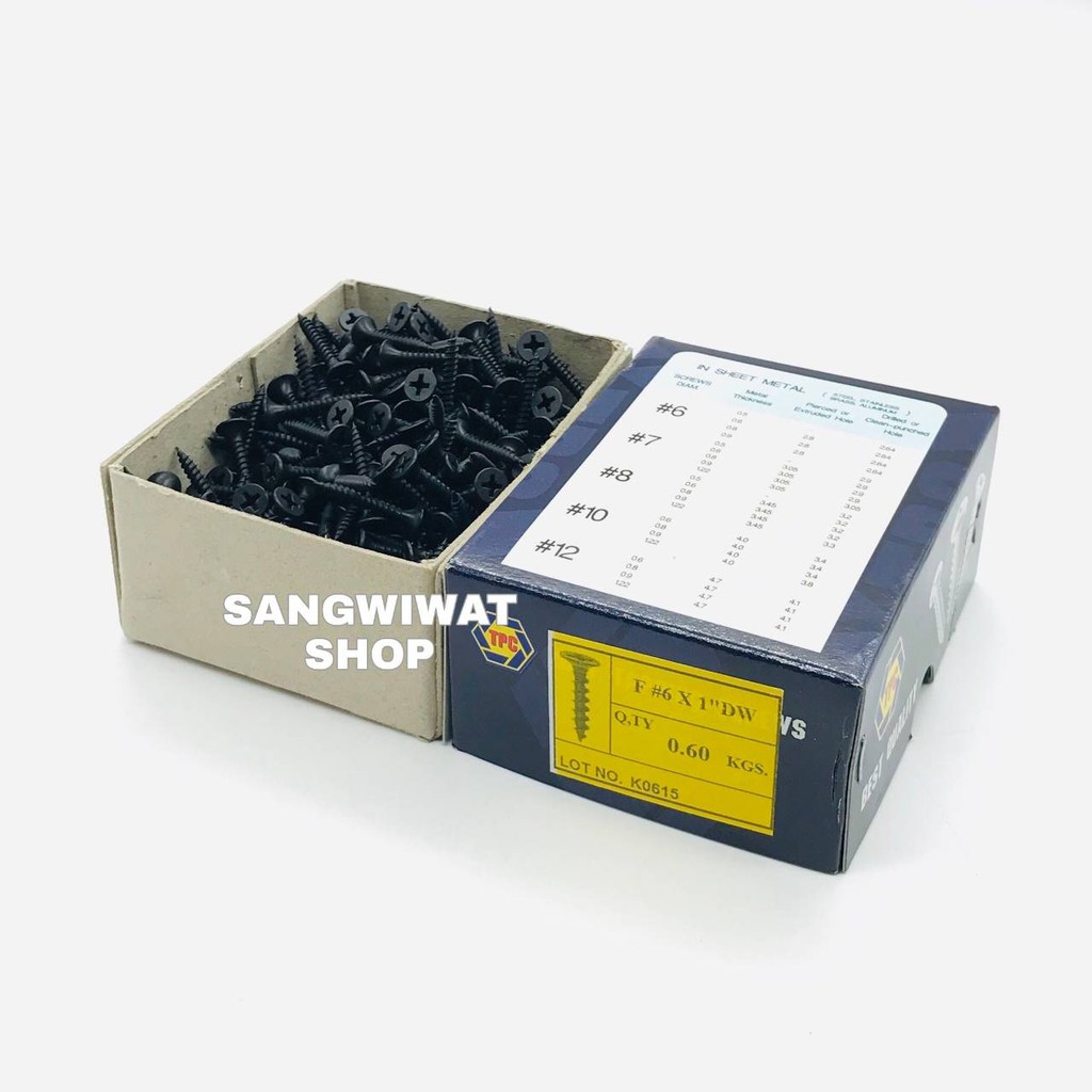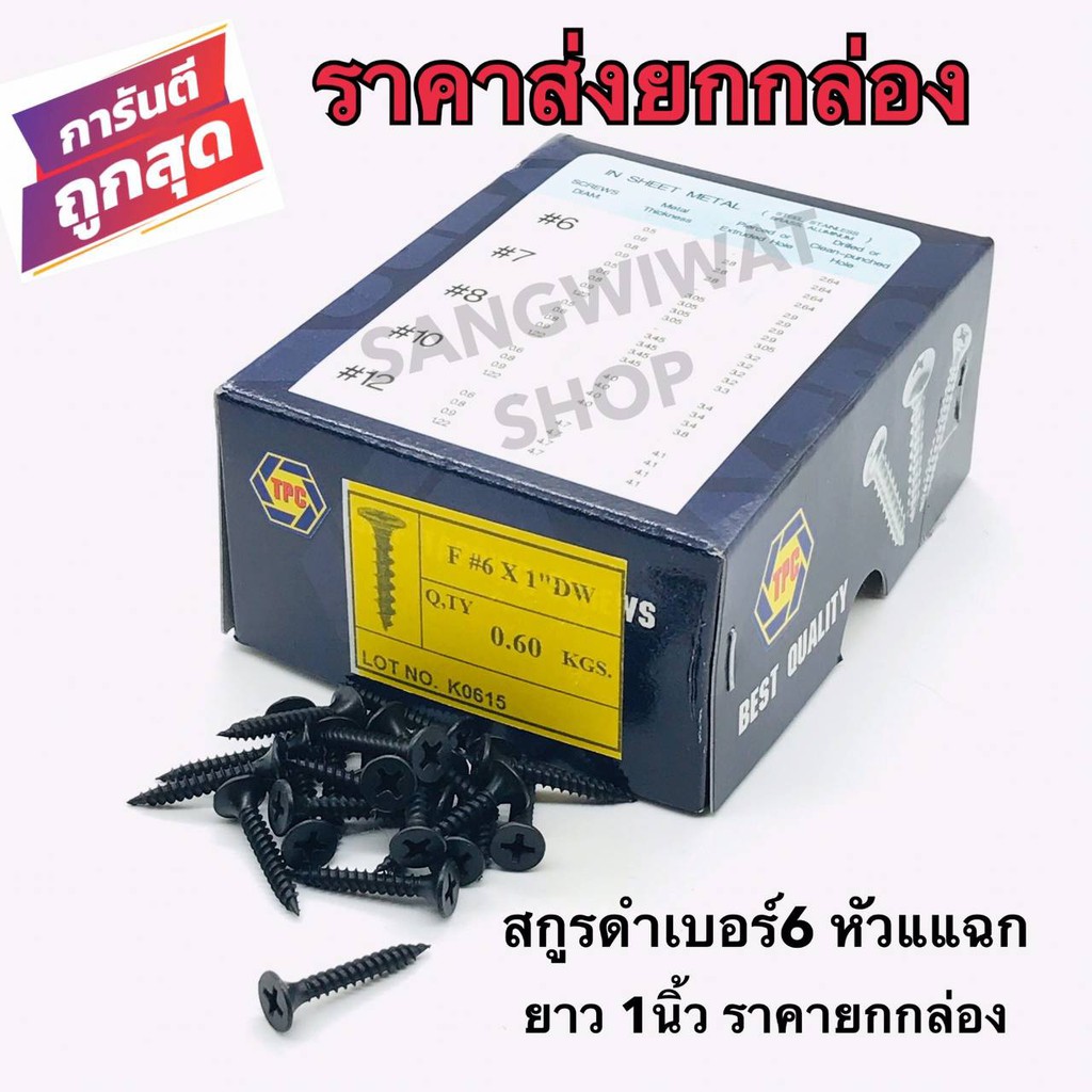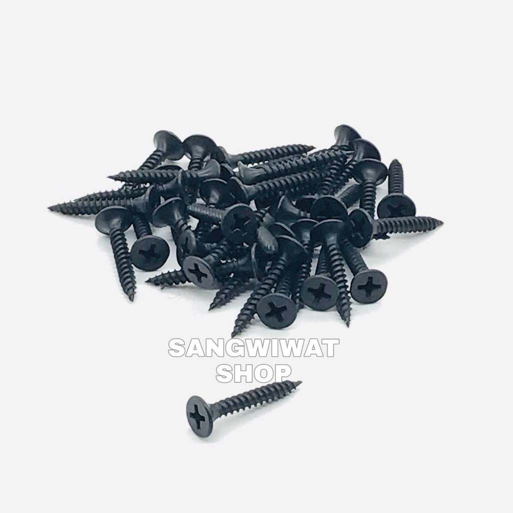สกรูดำ สกรูยิงฝ้า เบอร์6 ยาว 1 นิ้ว หัวแฉกแบน (ราคายกกล่องราคาส่ง) เกลียวปล่อย สีดำ ยิงแผ่นฝ้ายิปซั่ม ฝ้าฉาบเรียบ ซีลา