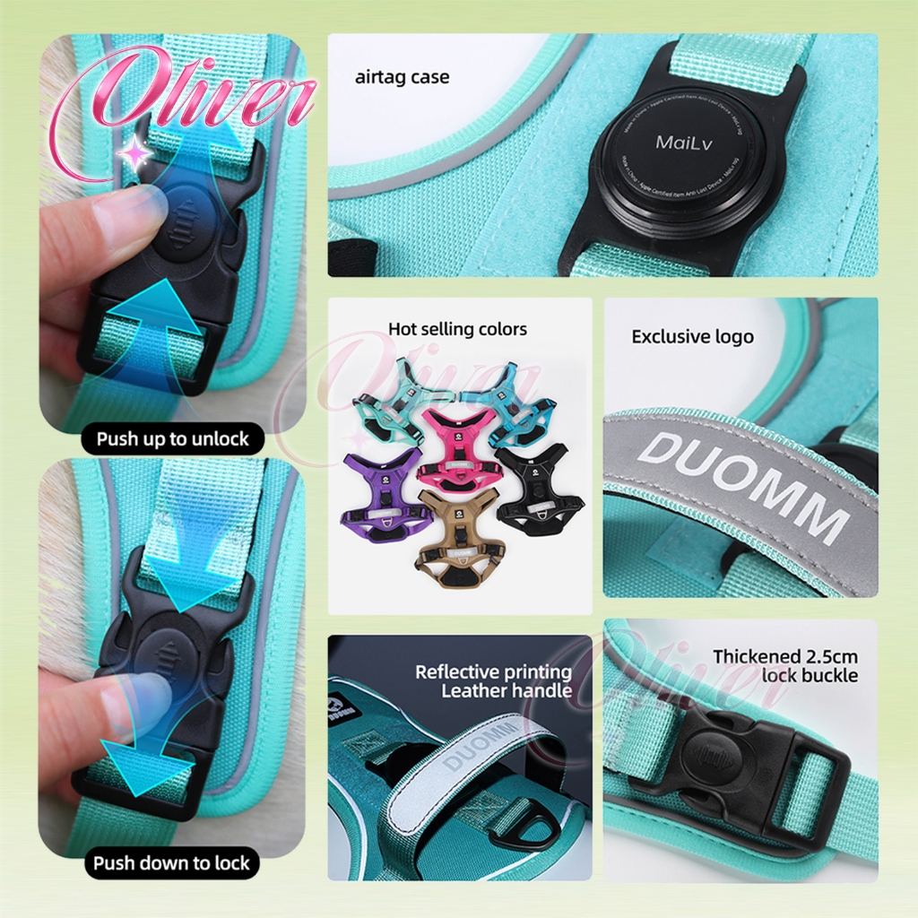 【Oliver】เคสแอร์แท็ก สายรัดอกสุนัข นุ่ม รัดอกสุนัข ป้องกันการพุ่งออก สายรัดสุนัข ระบายอากาศได้ สายรัดอกหมา พร้อมที่จับดึง เสื้อรัดอกหมา Airtag case Dog Harness