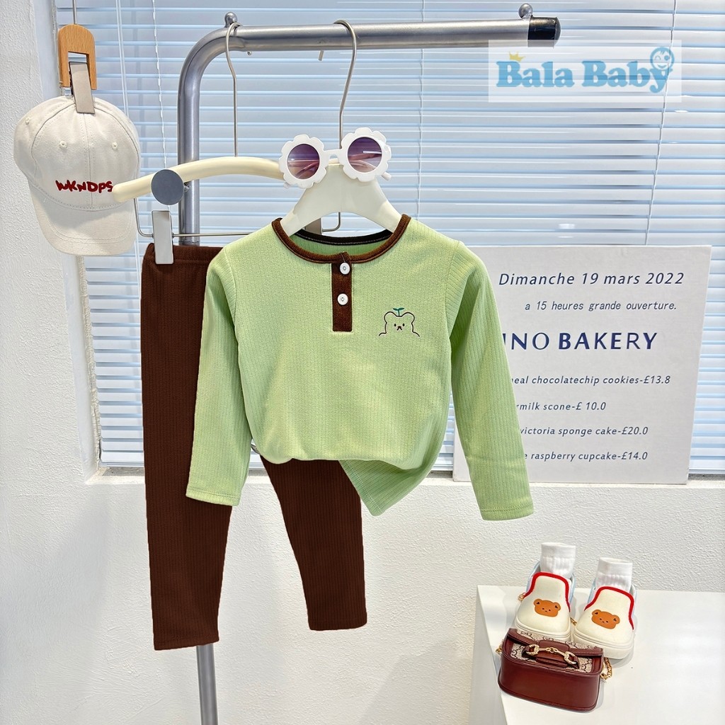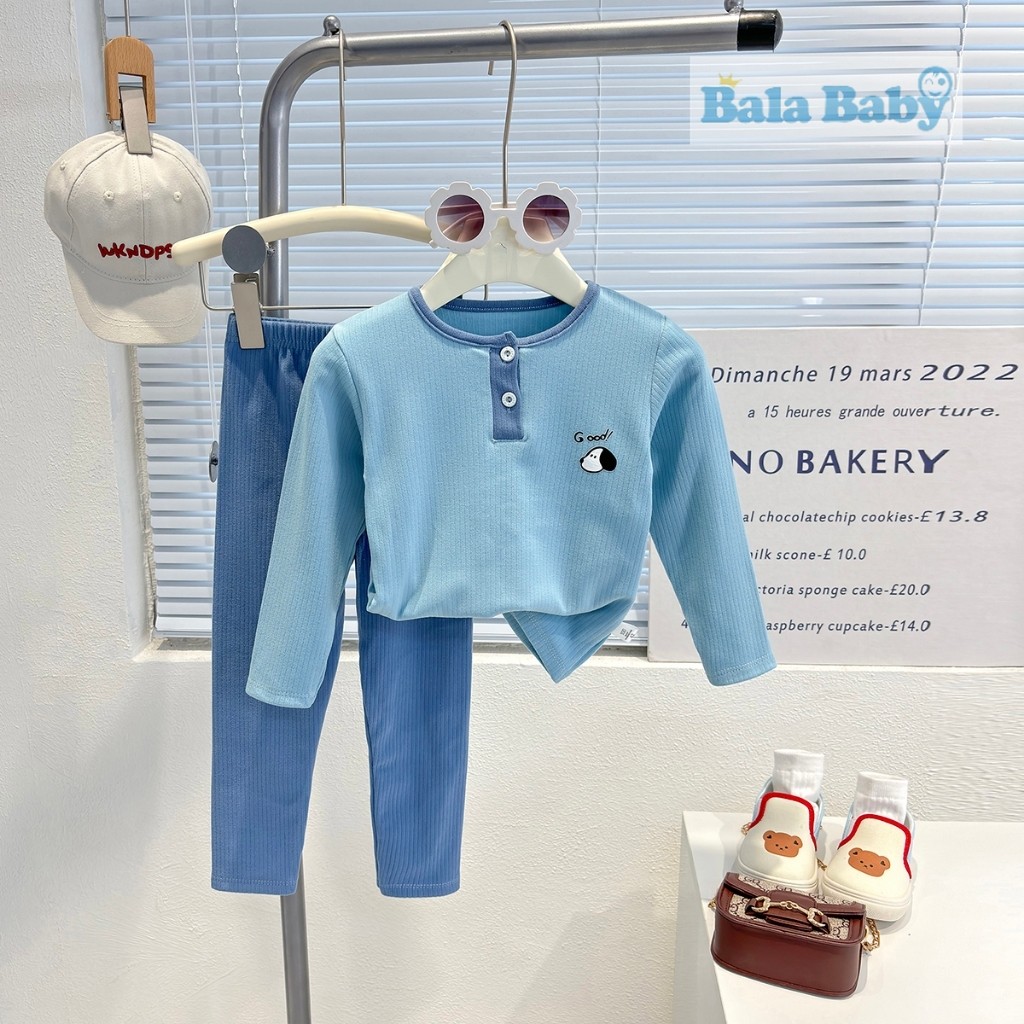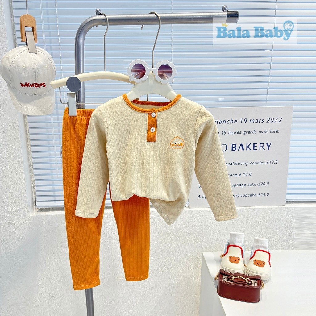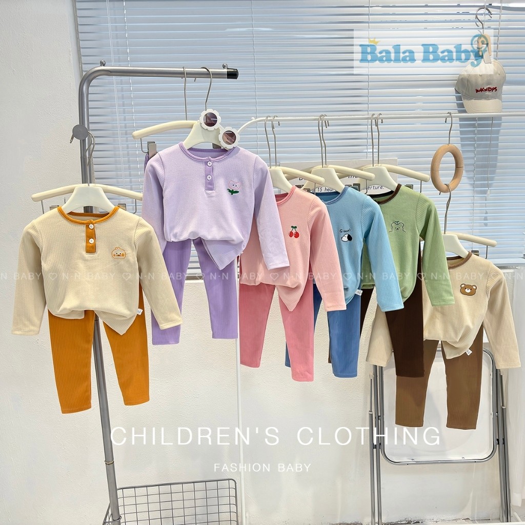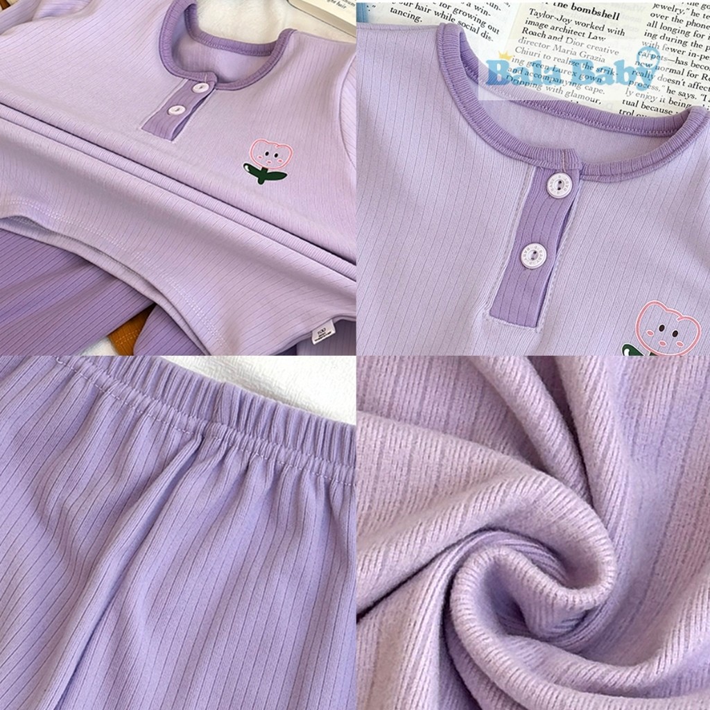 ชุดนอนเด็ก ชุดนอนผ้าร่อง เสื้อแขนยาว+กางเกงขายาว ชุดเซท 2 ชิ้น CXT28