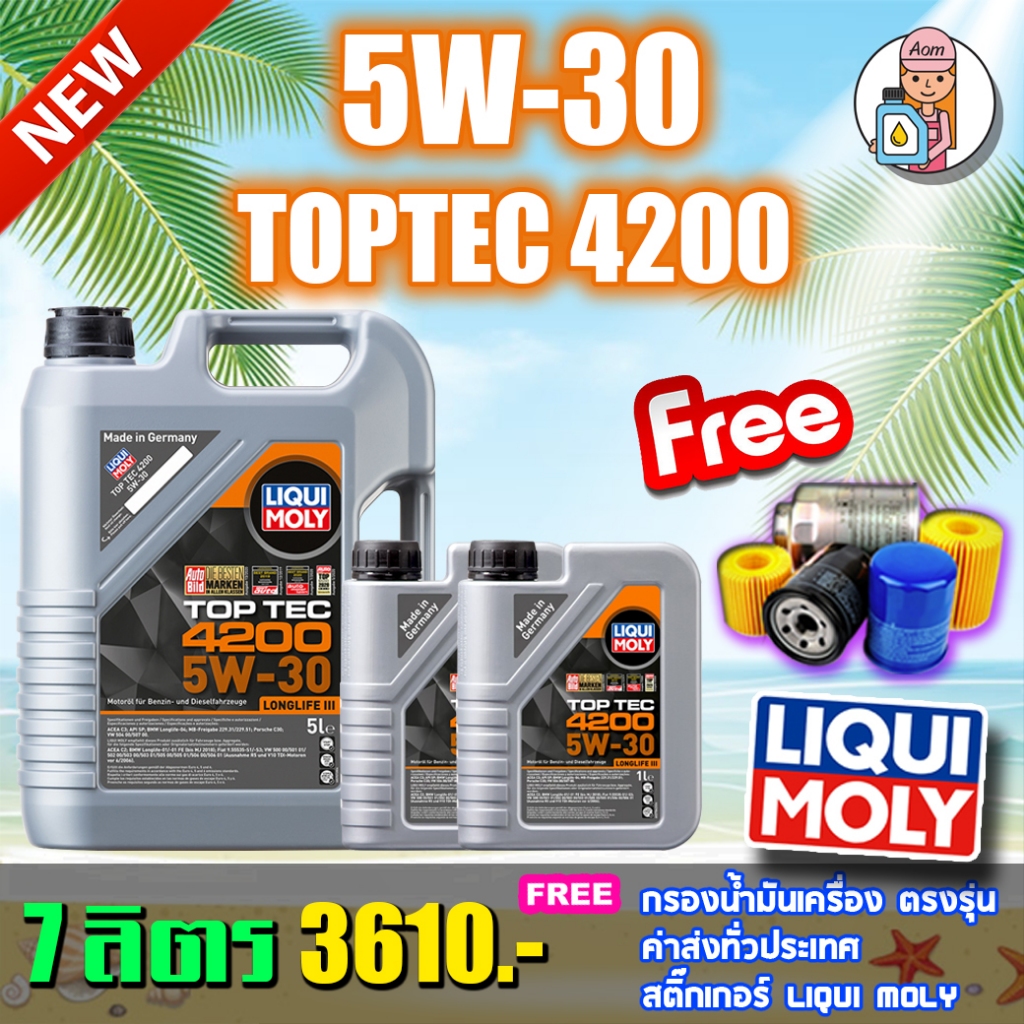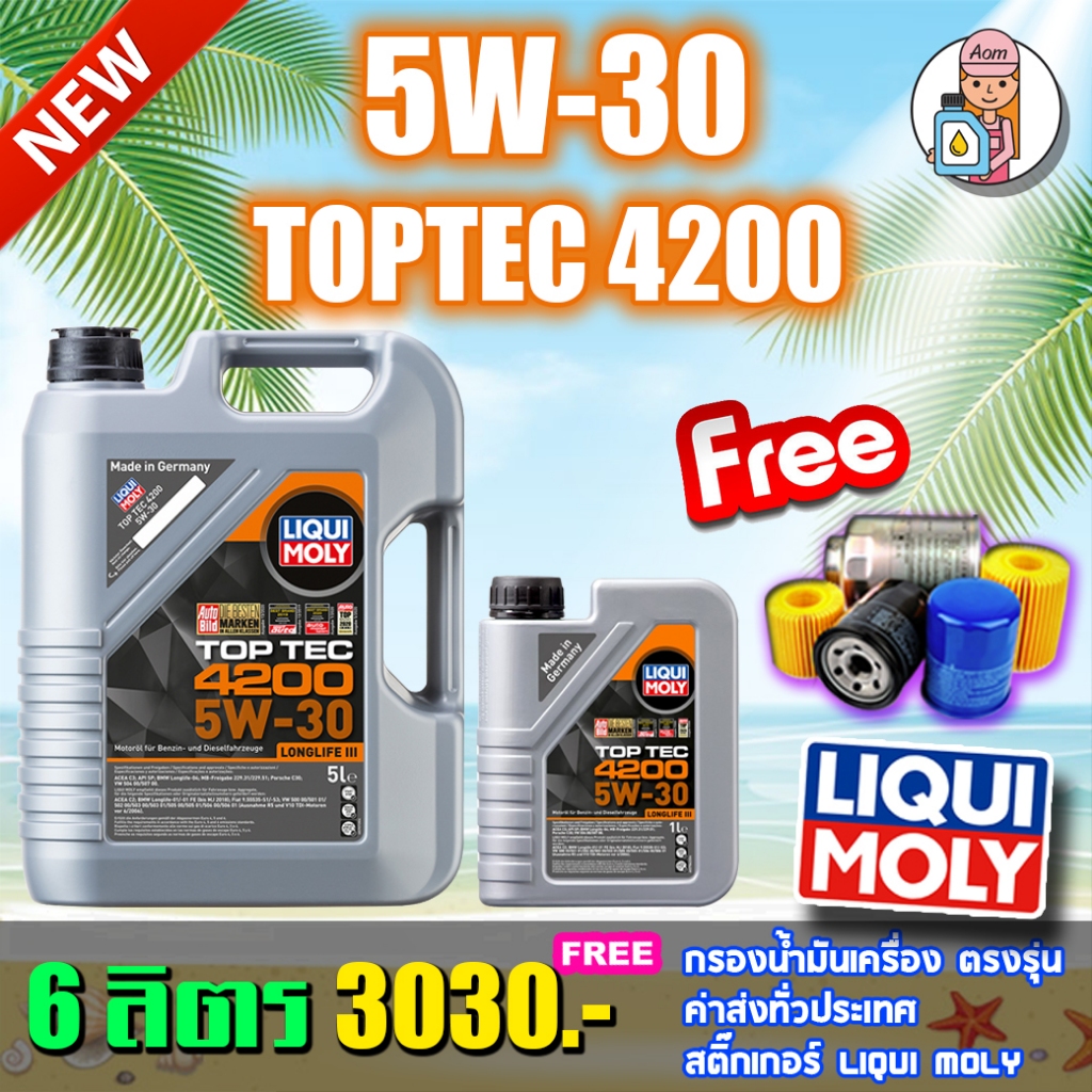 🔥แถมกรองน้ำมันเครื่อง🔥LIQUI MOLY น้ำมันเครื่อง TOP TEC 4200 5W-30 ขนาด 5,6,7,8