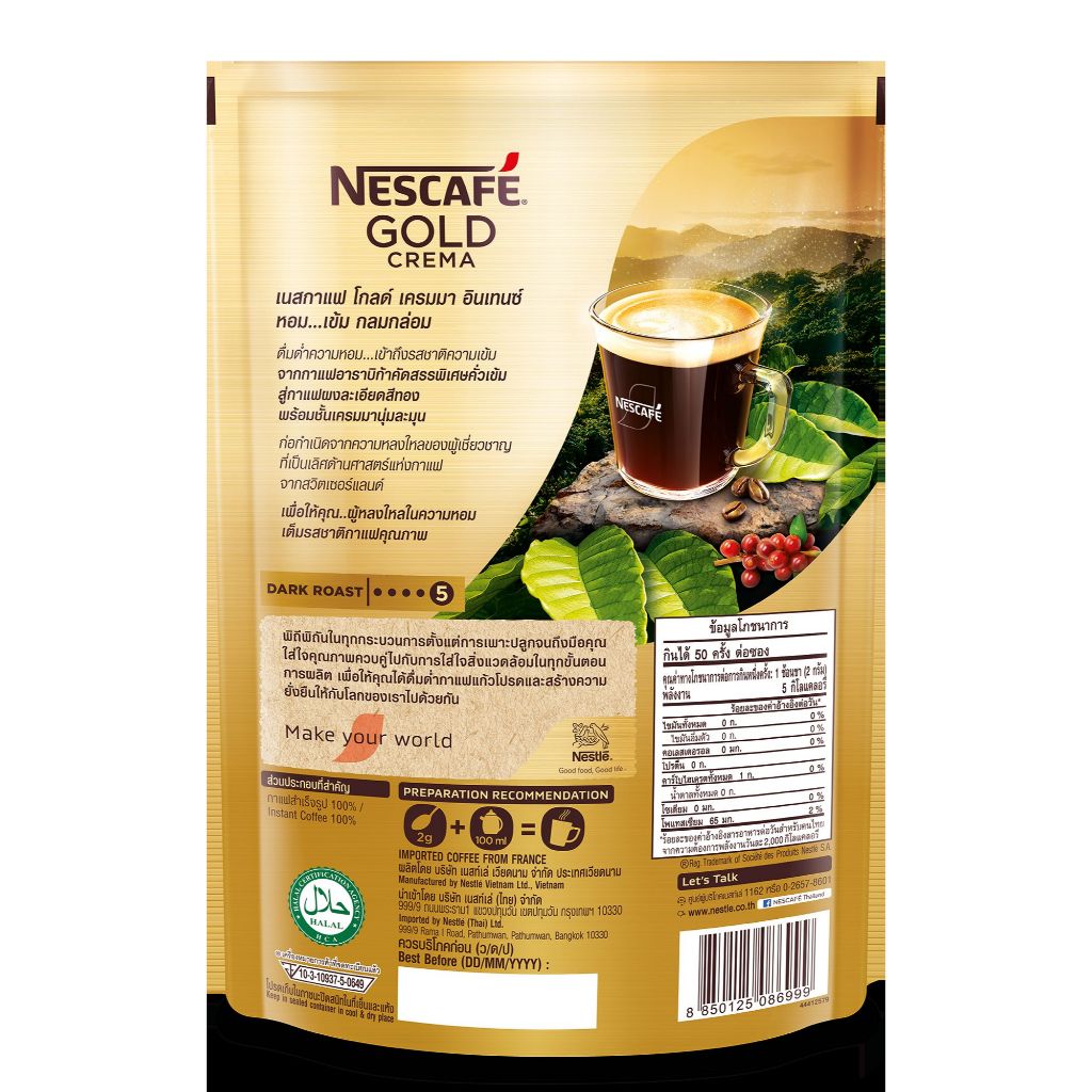 NESCAFÉ Gold Crema Intense เนสกาแฟ โกลด์ เครมมา อินเทนส์ แบบถุง ขนาด 100 กรัม NESCAFE