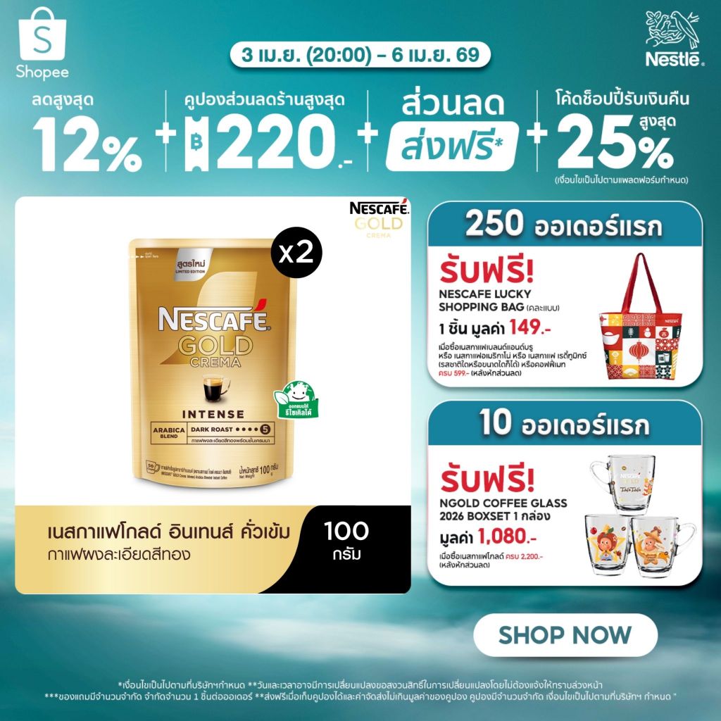 NESCAFÉ Gold Crema Intense เนสกาแฟ โกลด์ เครมมา อินเทนส์ แบบถุง ขนาด 100 กรัม (แพ็ค 2 ถุง) NESCAFE