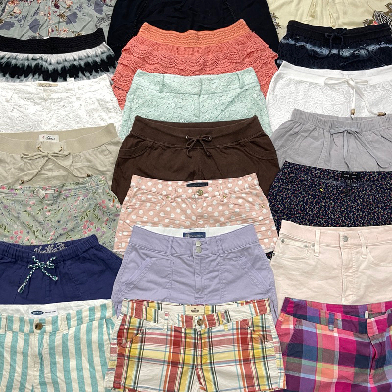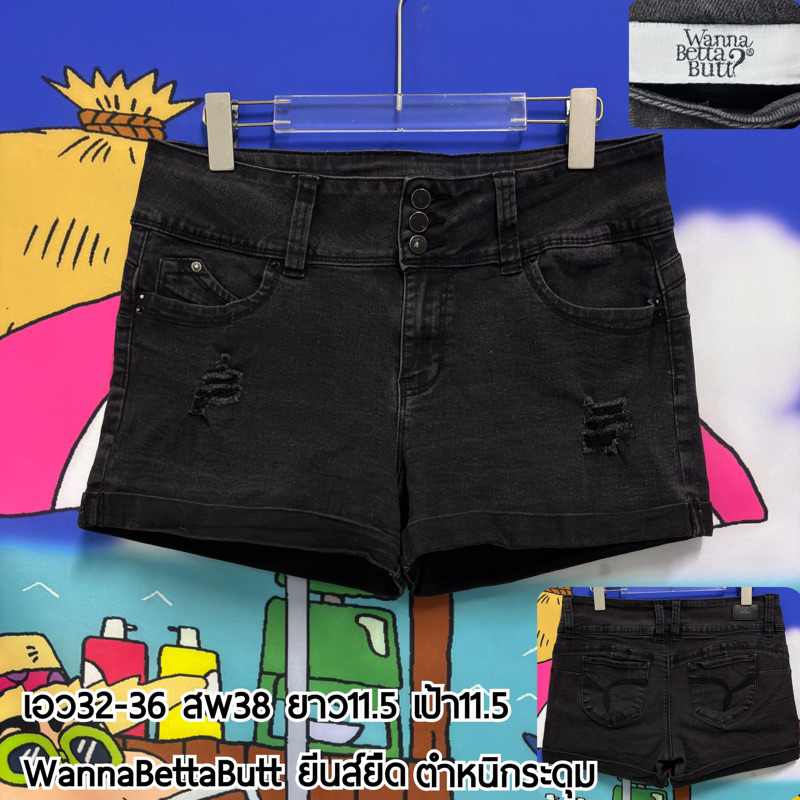 กางเกงขาสั้นยีนส์ผ้า-spandex-linenรวมเอวสูง เอวต่ำus🇺🇸