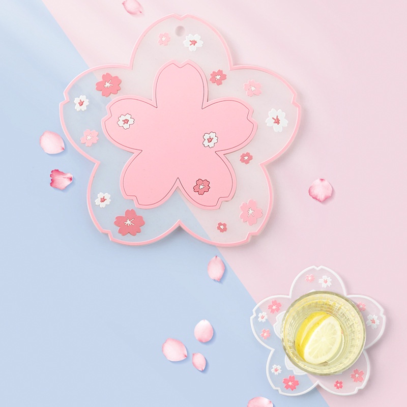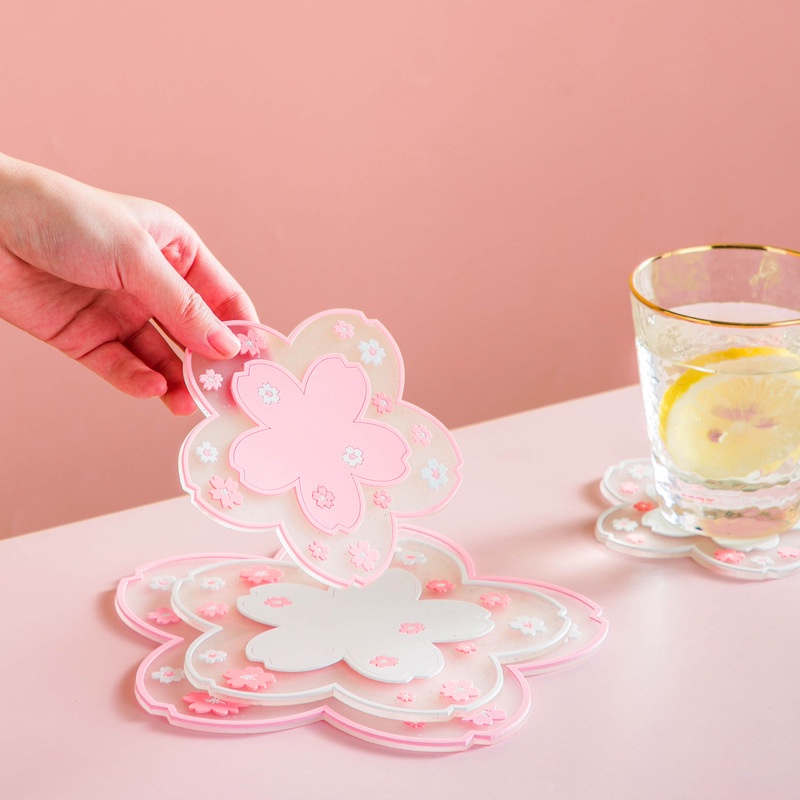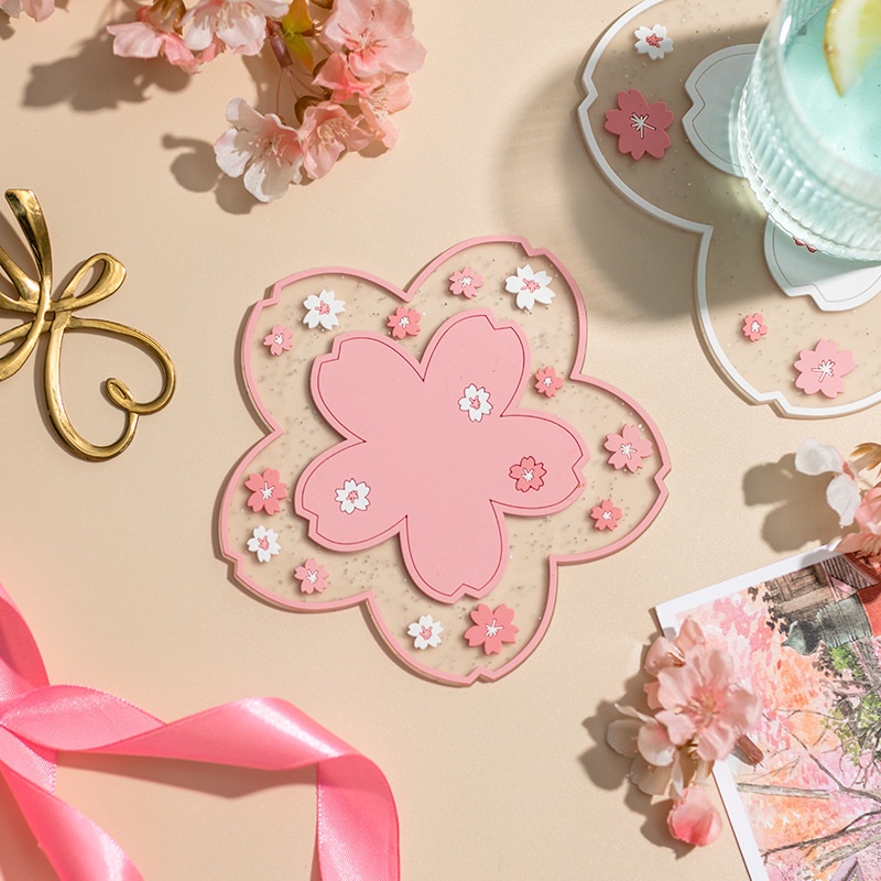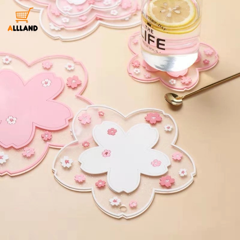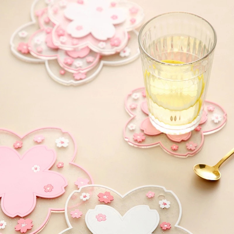 แผ่นรองแก้ว PVC ลายดอกซากุระ สีโปร่งใส สไตล์ญี่ปุ่น สําหรับแก้วกาแฟ ชา เครื่องดื่ม
